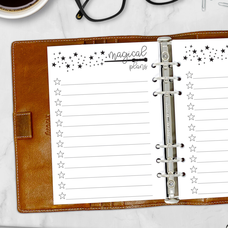 Planner insert with monthly and weekly pages, horizontal weekly layout, calendar refill for ring planners, discbound, disc bound, or no punch—available in Compact or Deluxe