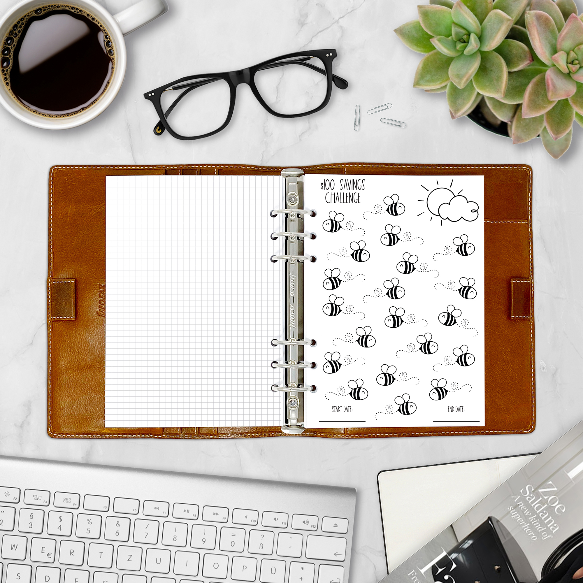 $100 Savings Challenge Planner Insert – Buzzin’ Bee Tracker for $5 Increments