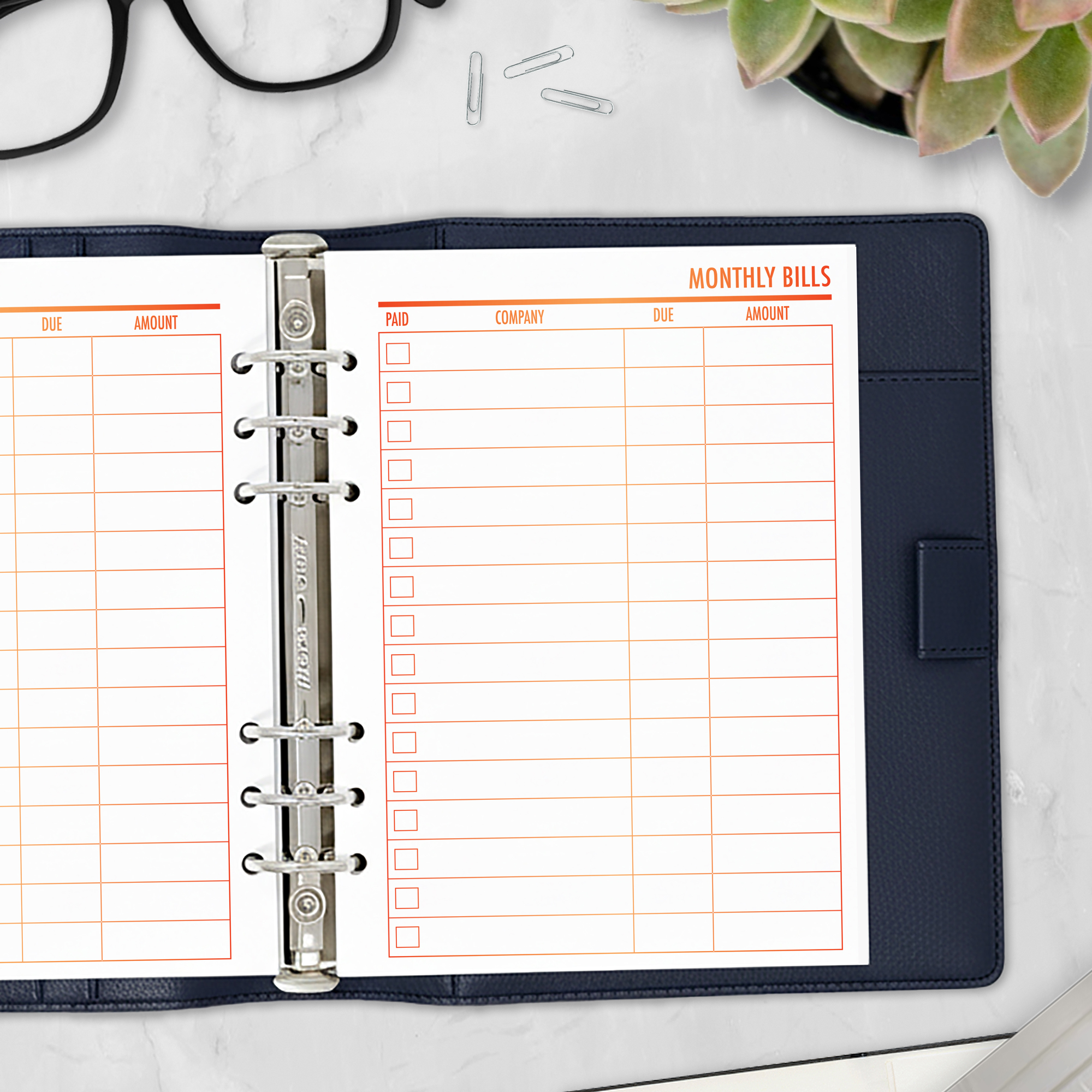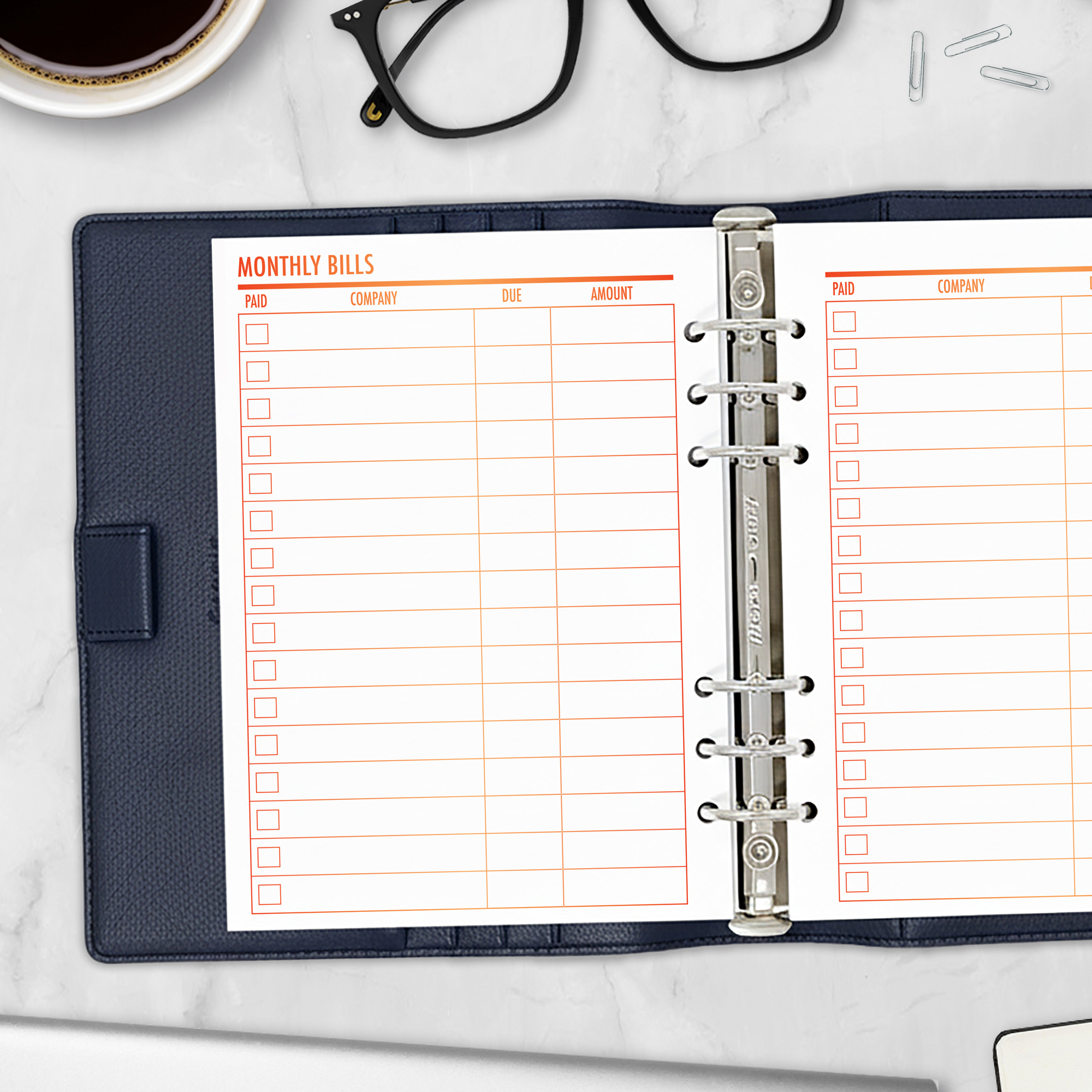 This bill tracker planner insert is designed to help you stay on top of monthly payments with a clear, organized layout. List your bills, due dates, amounts, and mark them off when paid—no more “oops, I forgot” fees.
