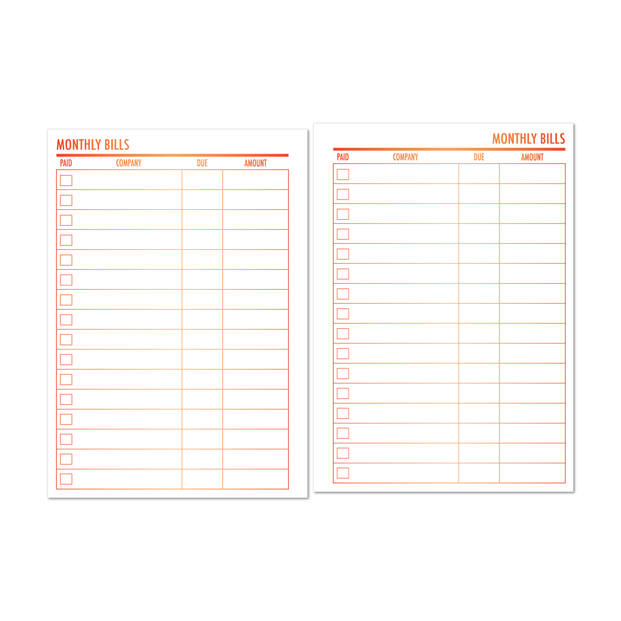 Bill Tracker Planner Insert – Ember Kiss Gradient
