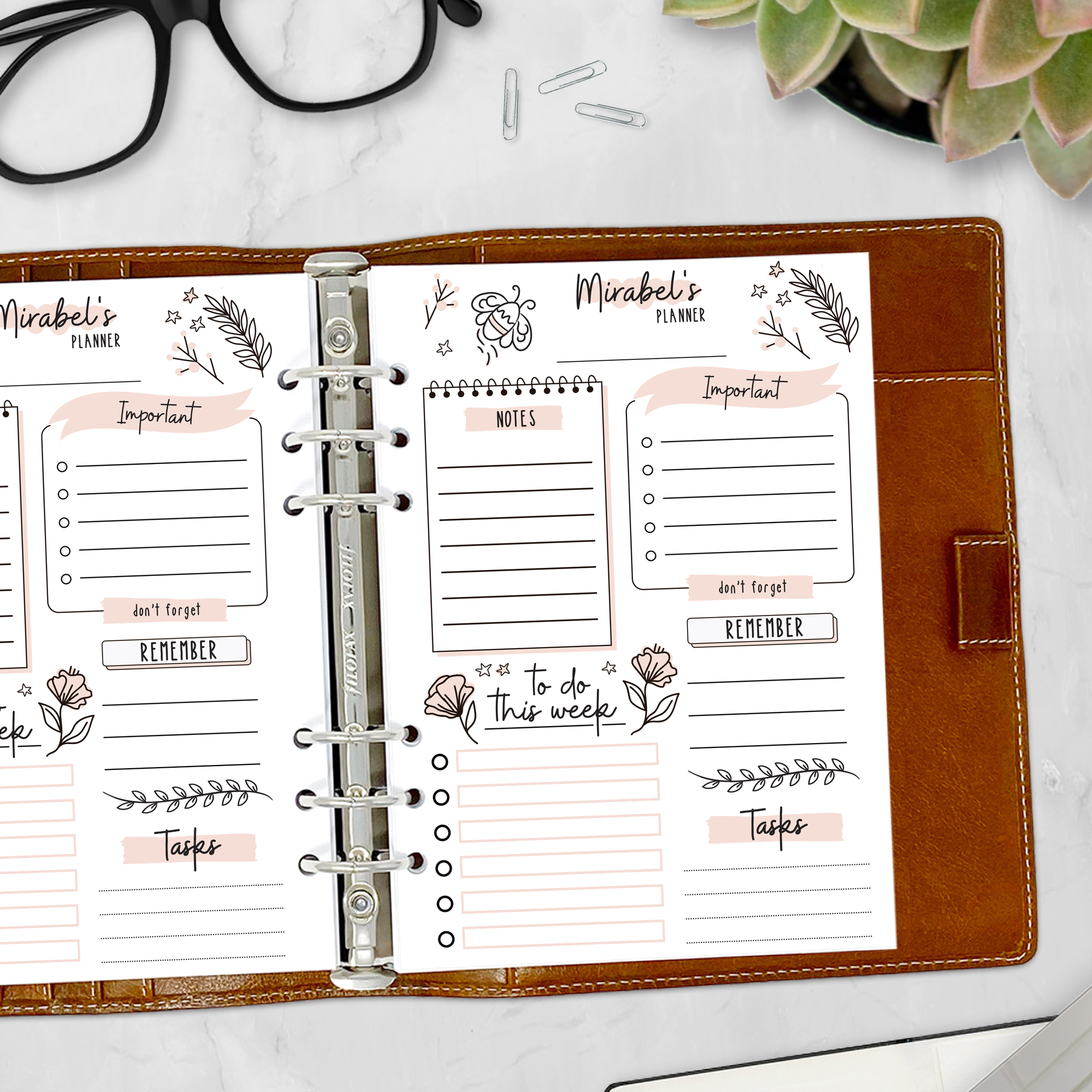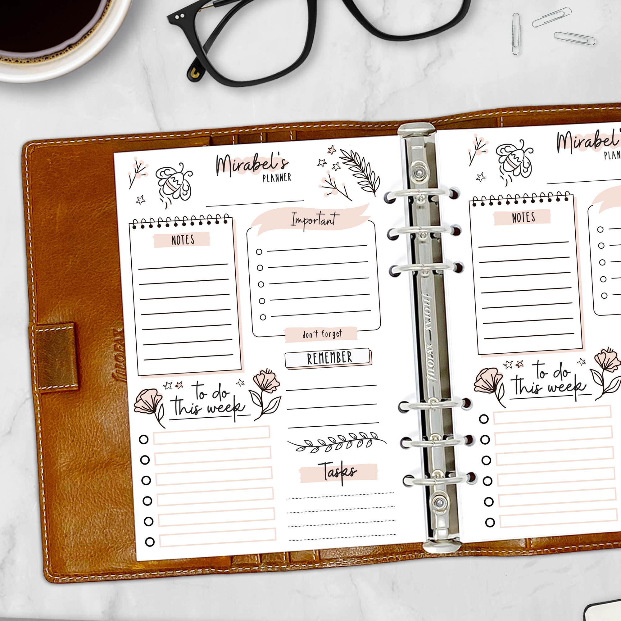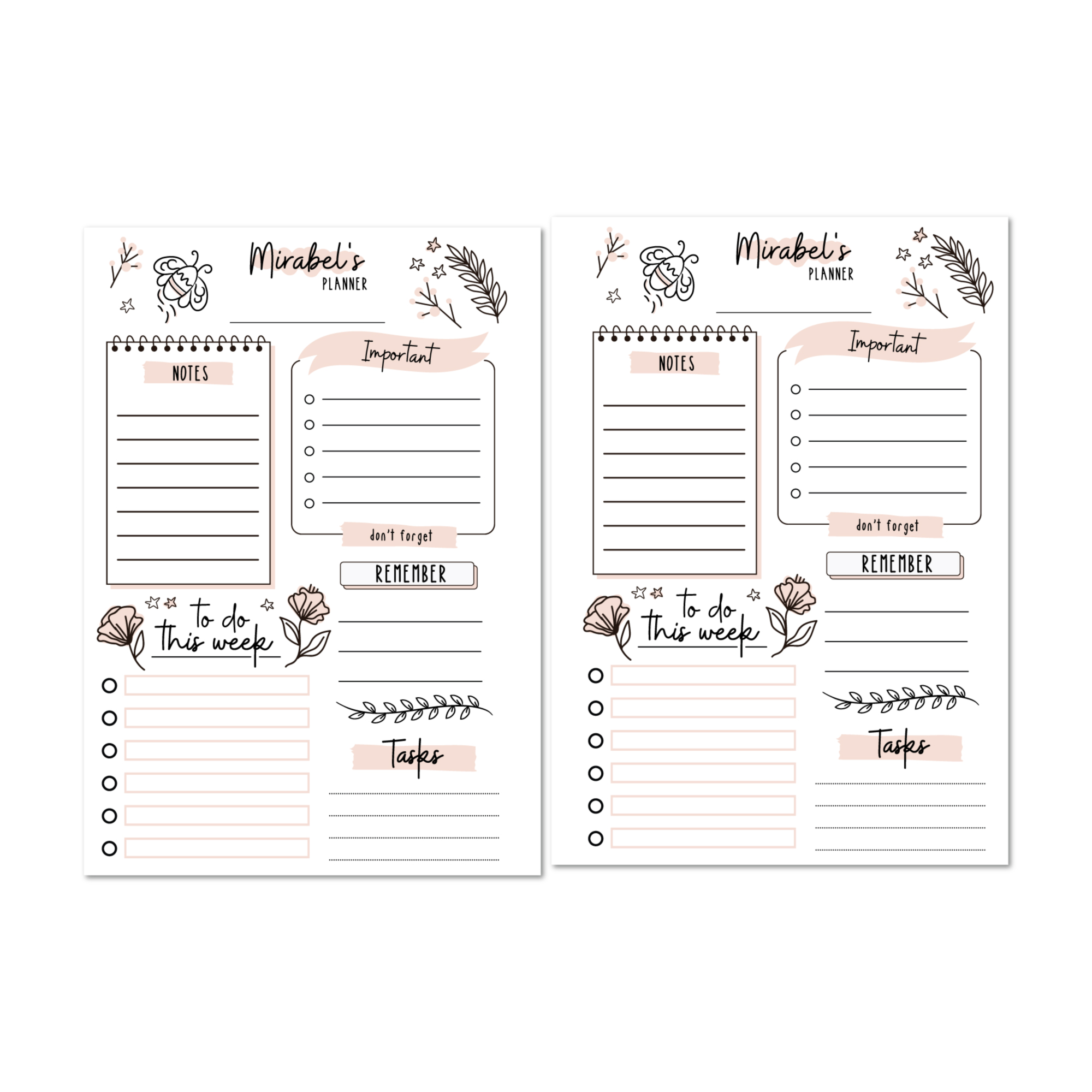 This planner insert gives you a tidy, lined layout for daily tasks across the week—topped with your name and accented by soft blush florals. It’s simple, structured, and personal—just like a well-planned week should be.