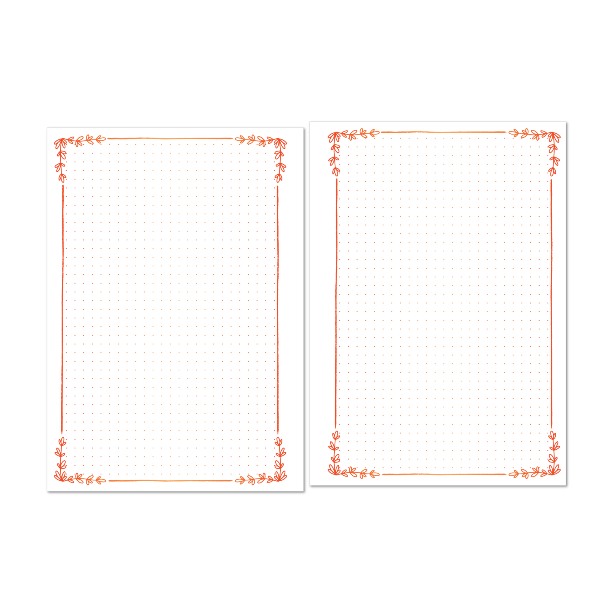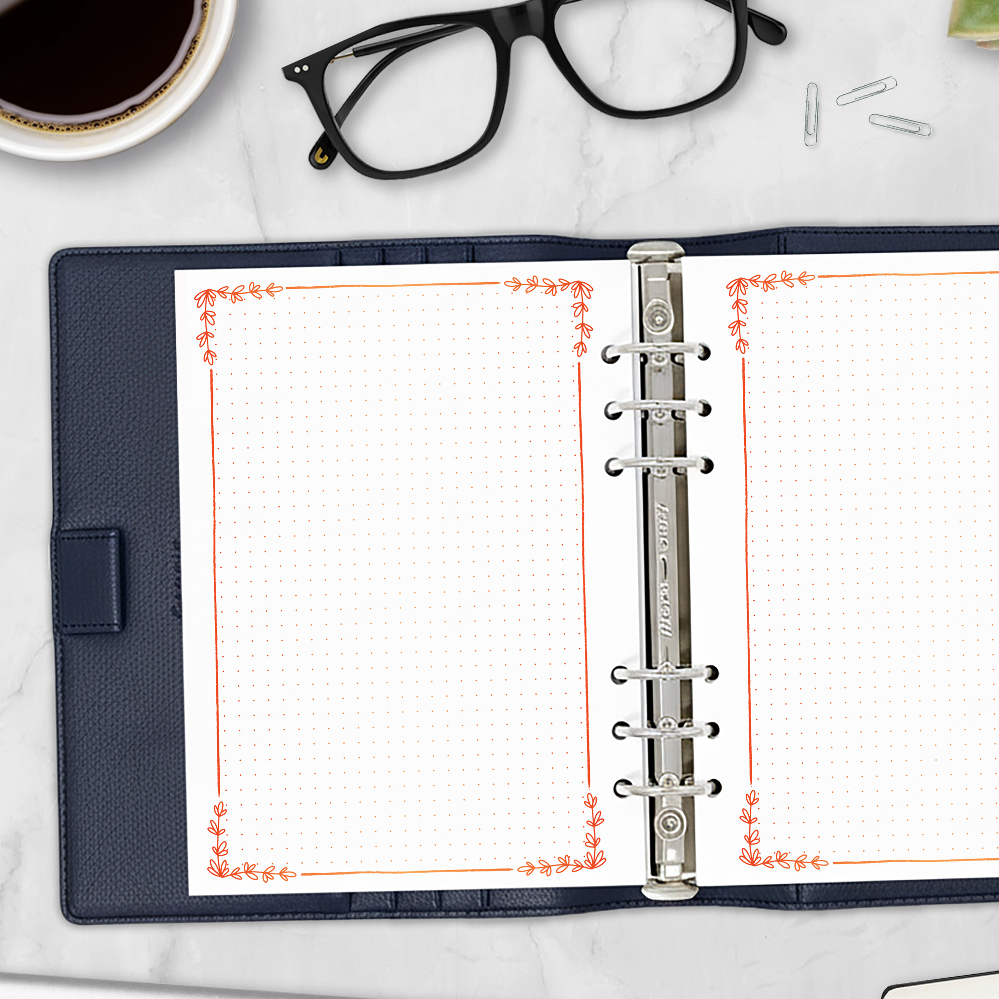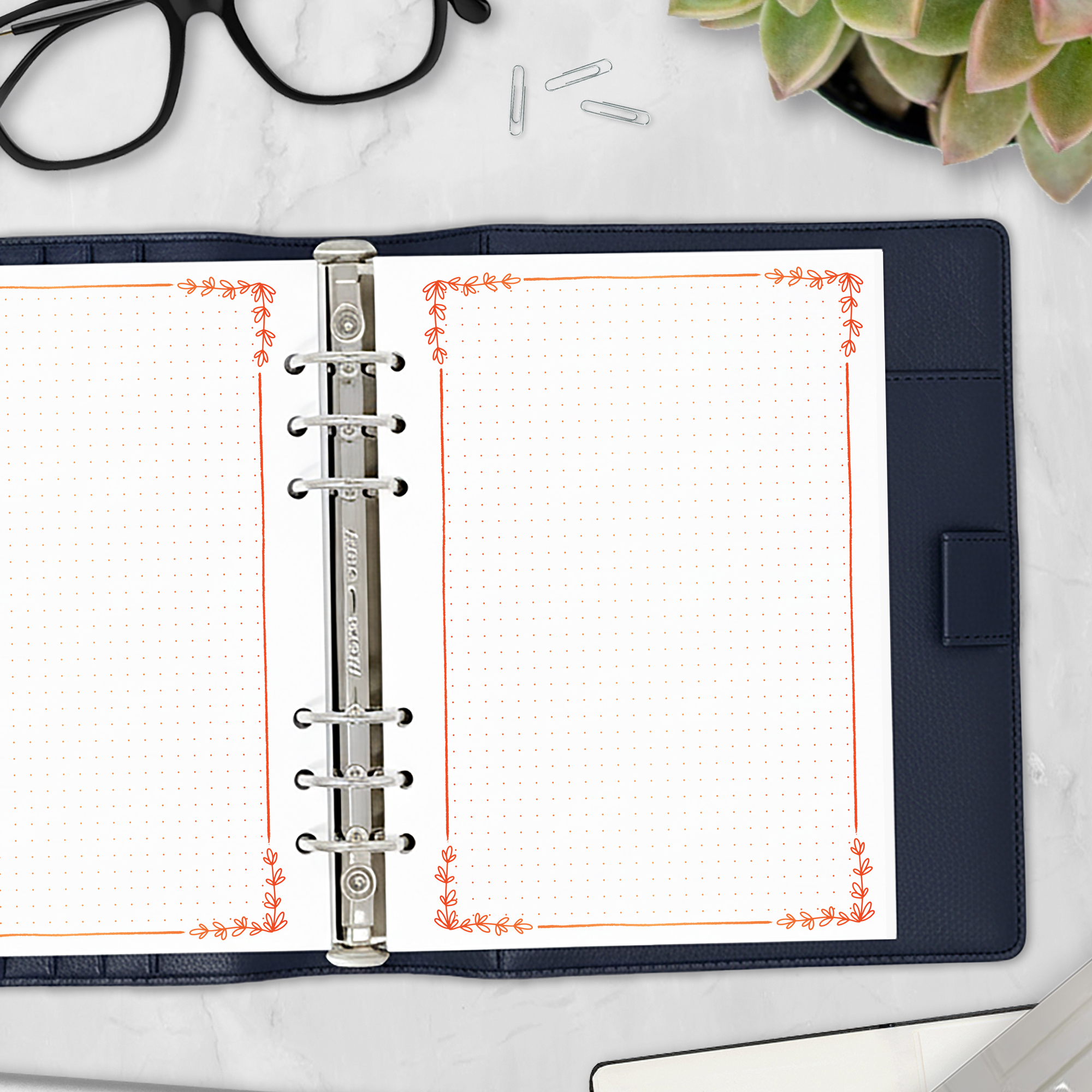 Our Botanical Notes planner insert features a clean dot-grid layout framed with a delicate botanical border. They’re simple, flexible, and intentionally undated, making them perfect for notes, lists, journaling, brainstorming, or whatever your brain needs to unload today.