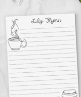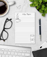 Personalization is a breeze with our titlecase font, featuring your first and/or last name. Our stationary adds a touch of elegance to your notepad and makes it uniquely yours. Whether you need a notepad for work, school, or personal use, our Half-Size Coffee Lover Notepad is the perfect solution.