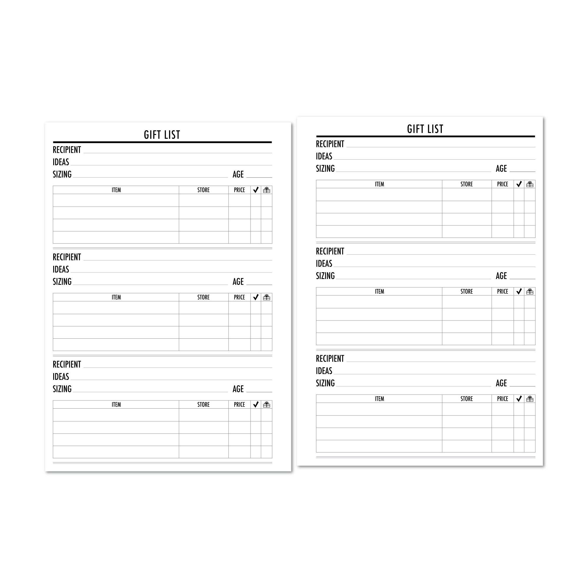 Gift List Planner Insert – Holiday & Occasion Shopping Tracker Pages
