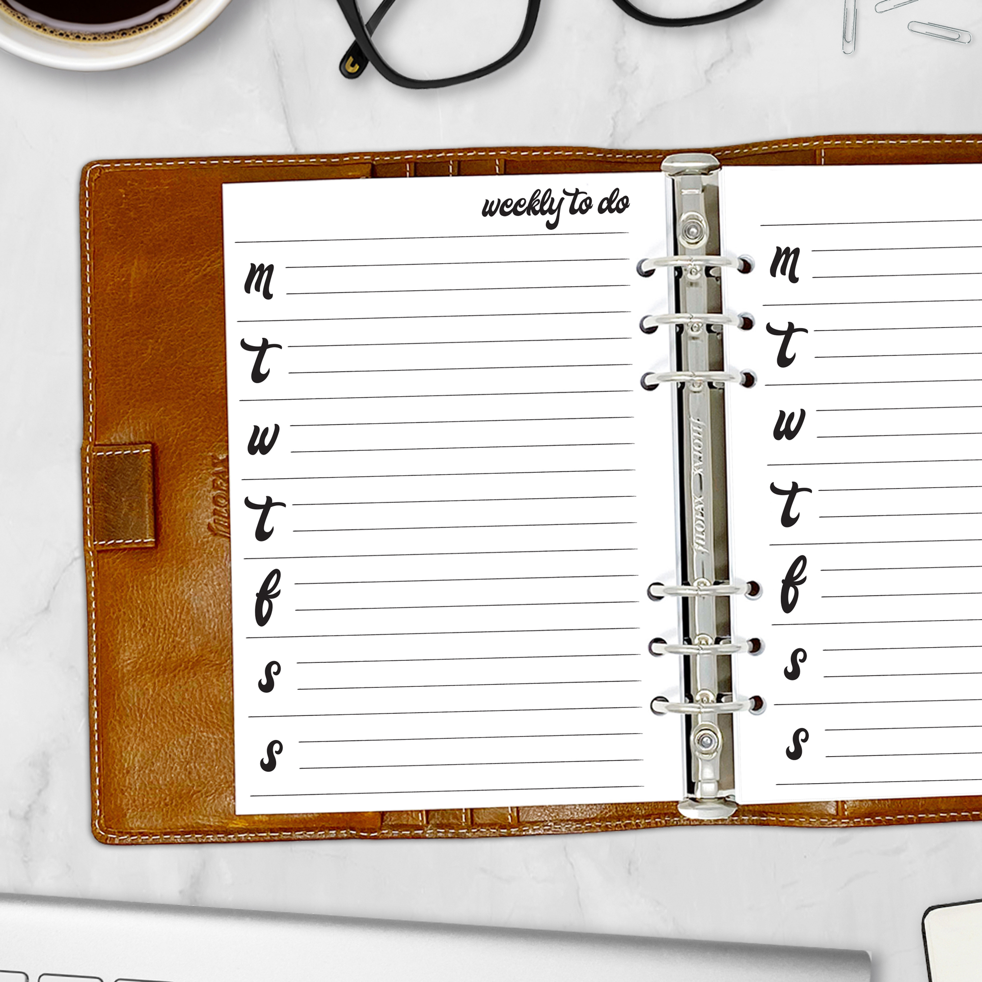 The Weekly To-Do – Groovy Font insert combines retro vibes with practical planning. Each page features a bold, vintage-inspired header and lined layout perfect for organizing weekly goals, must-dos, errands, and reminders. Whether you’re chasing dreams or checking chores, do it with a little style.