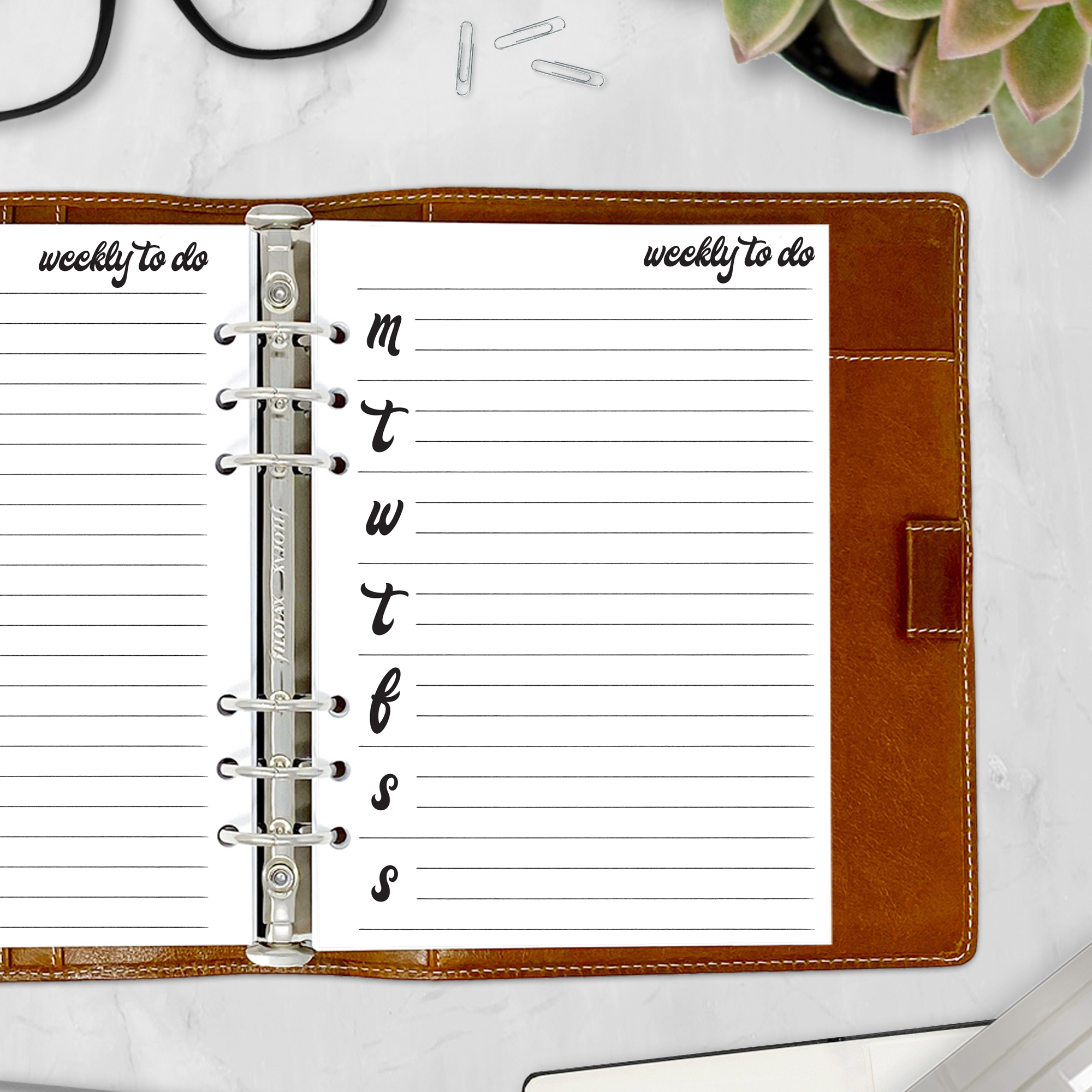 Weekly To-Do Planner Insert – Groovy Font Lined Pages for Retro Task Planning