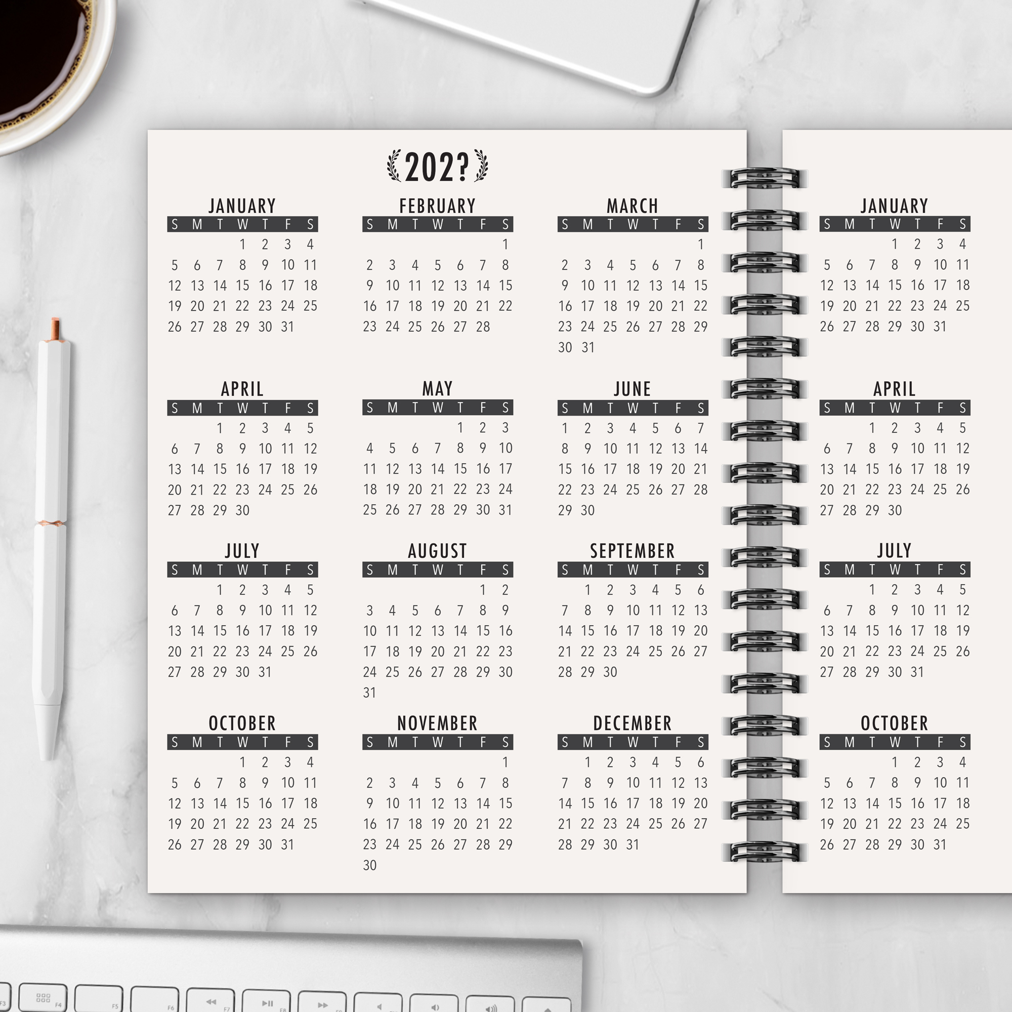 - Notes pages after each monthly spread