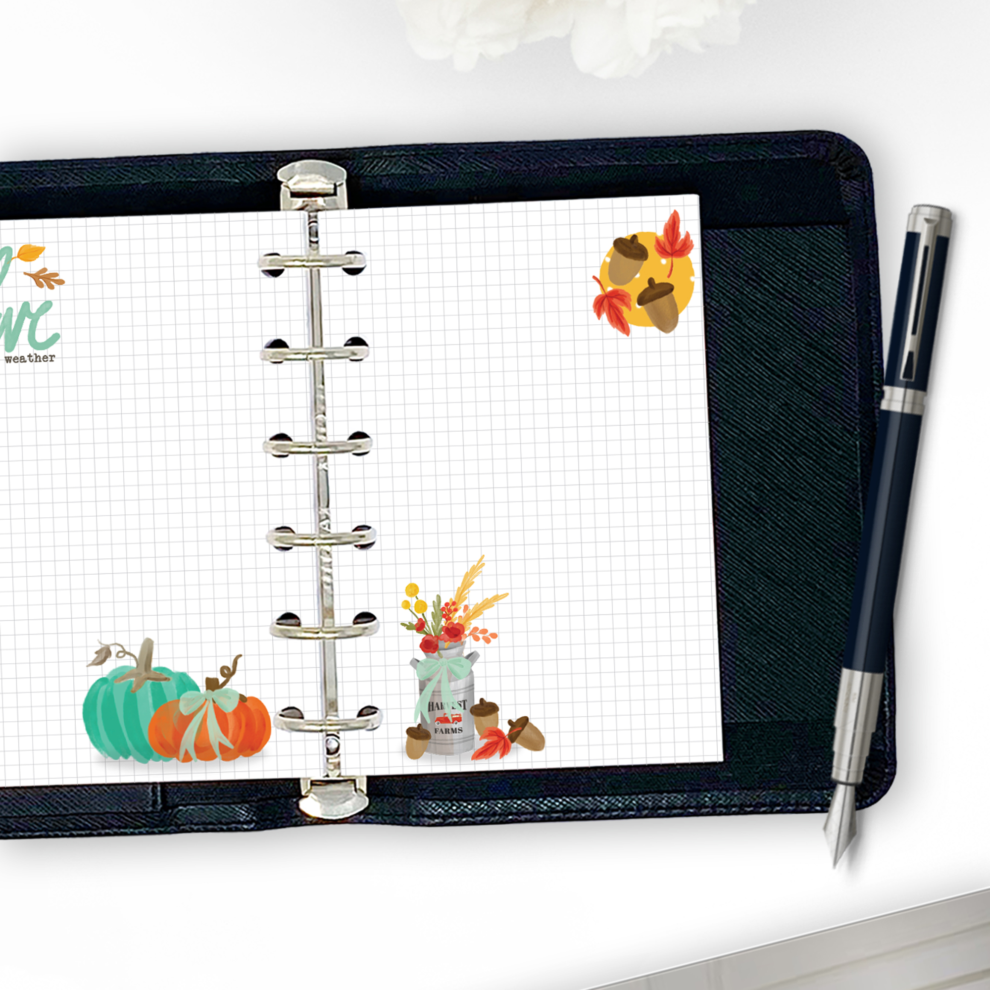 Use it for brainstorming, gratitude journaling, memory keeping, or just decorating your planner with fall feels.