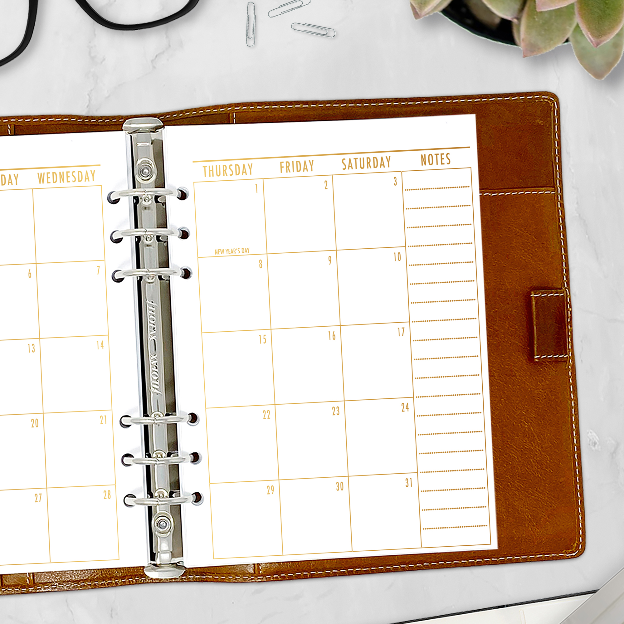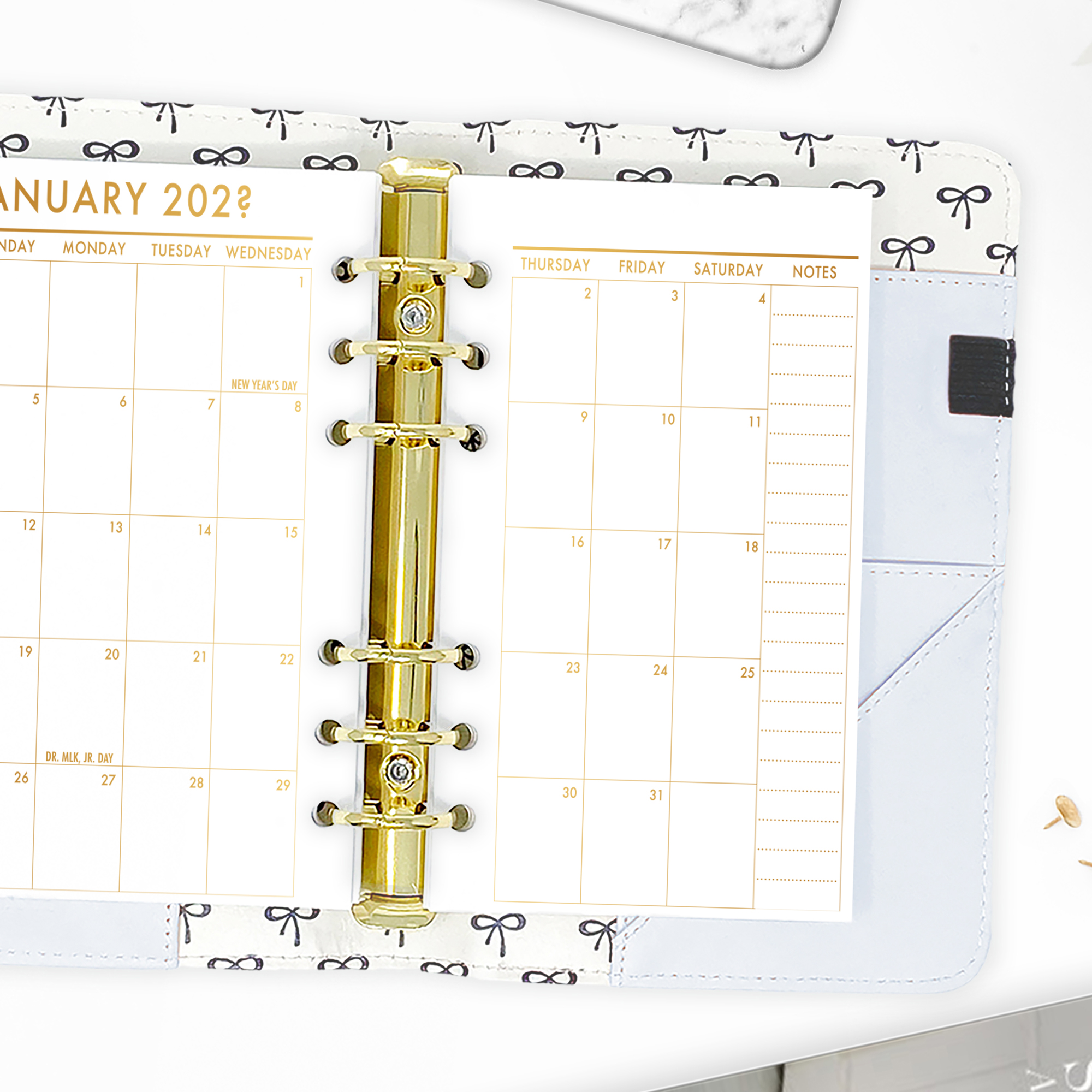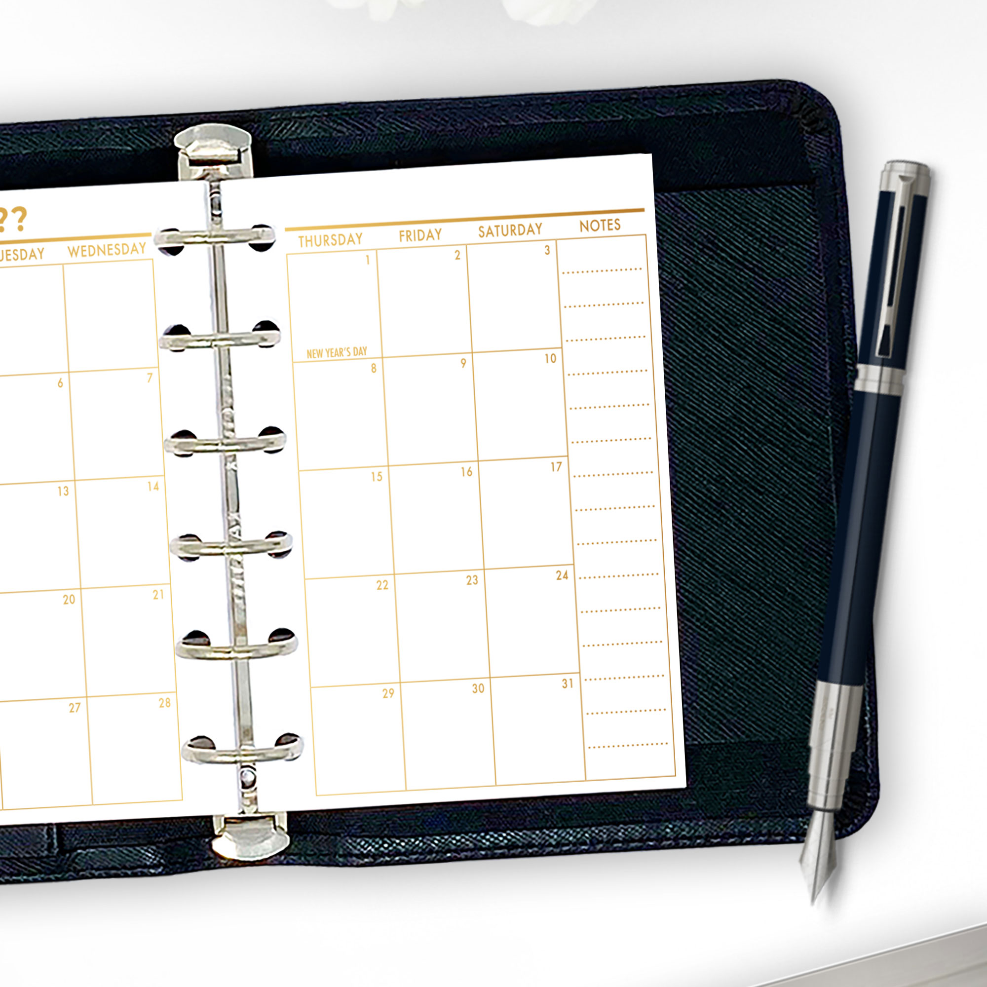 Month on 2 Pages Planner Insert – Gold Luxe Gradient