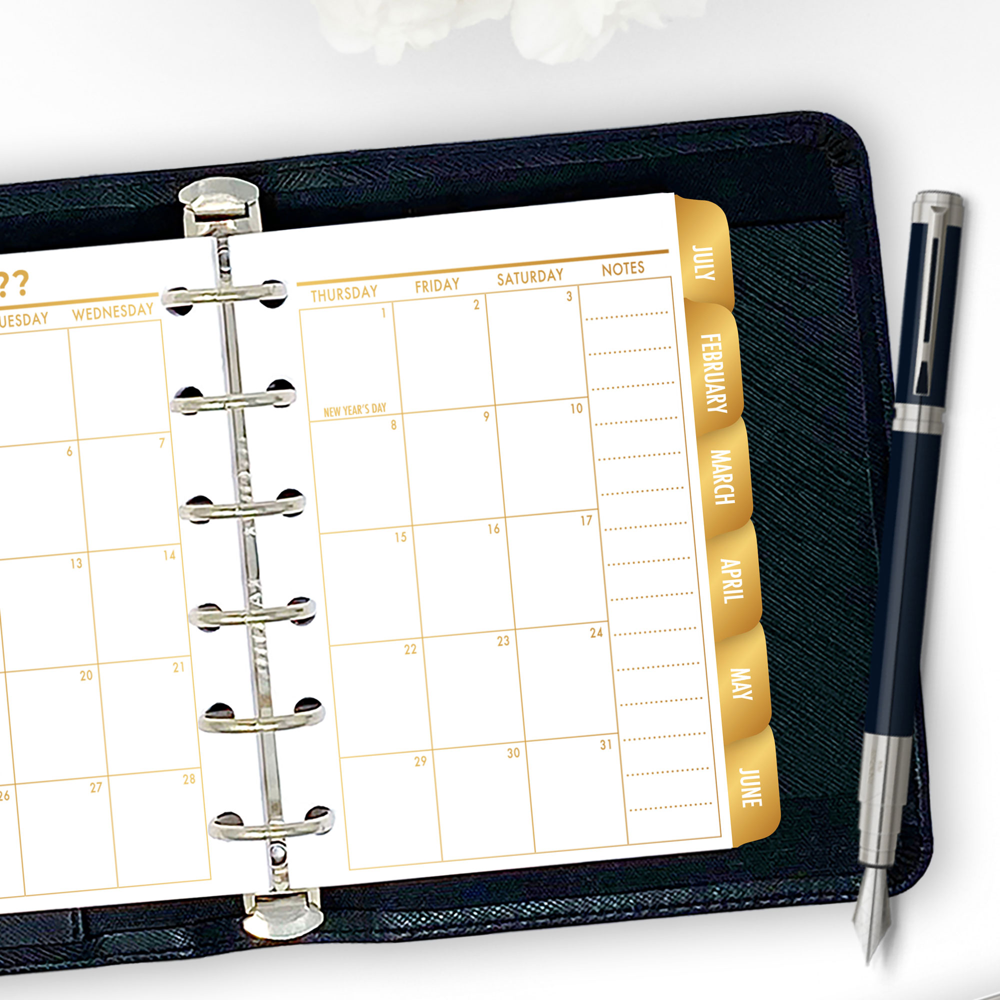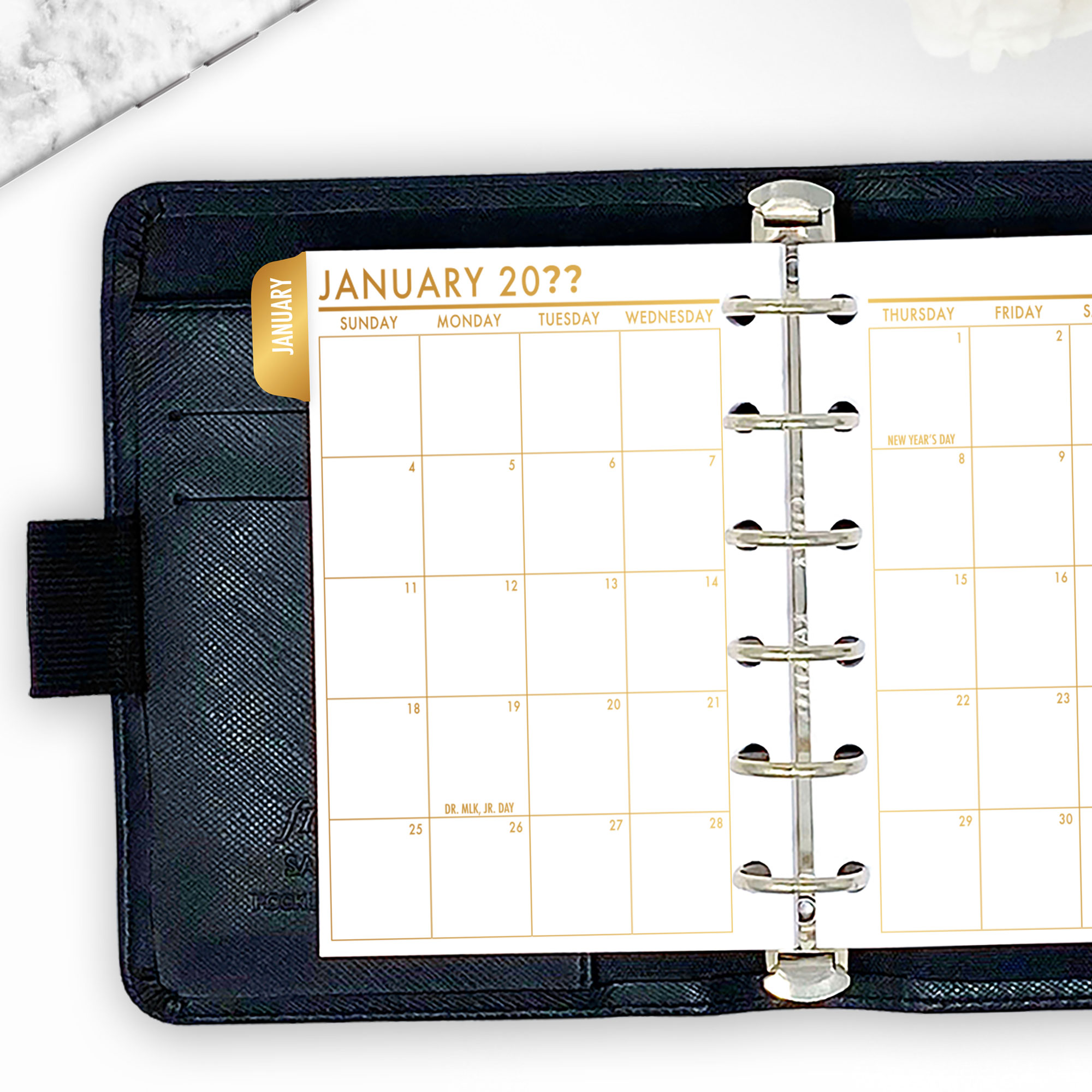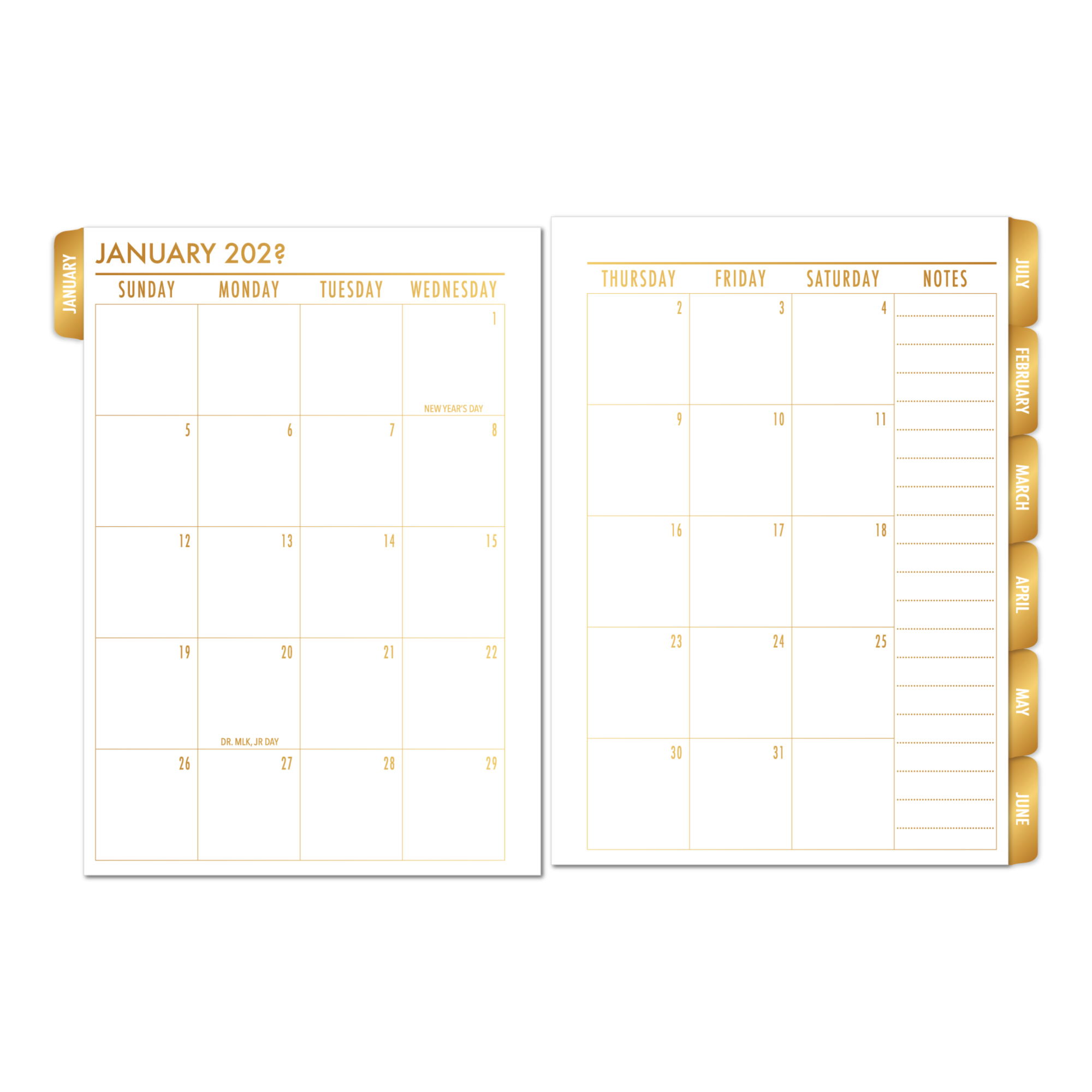 Month on 2 Pages Tabbed Planner Insert – Gold Luxe Gradient