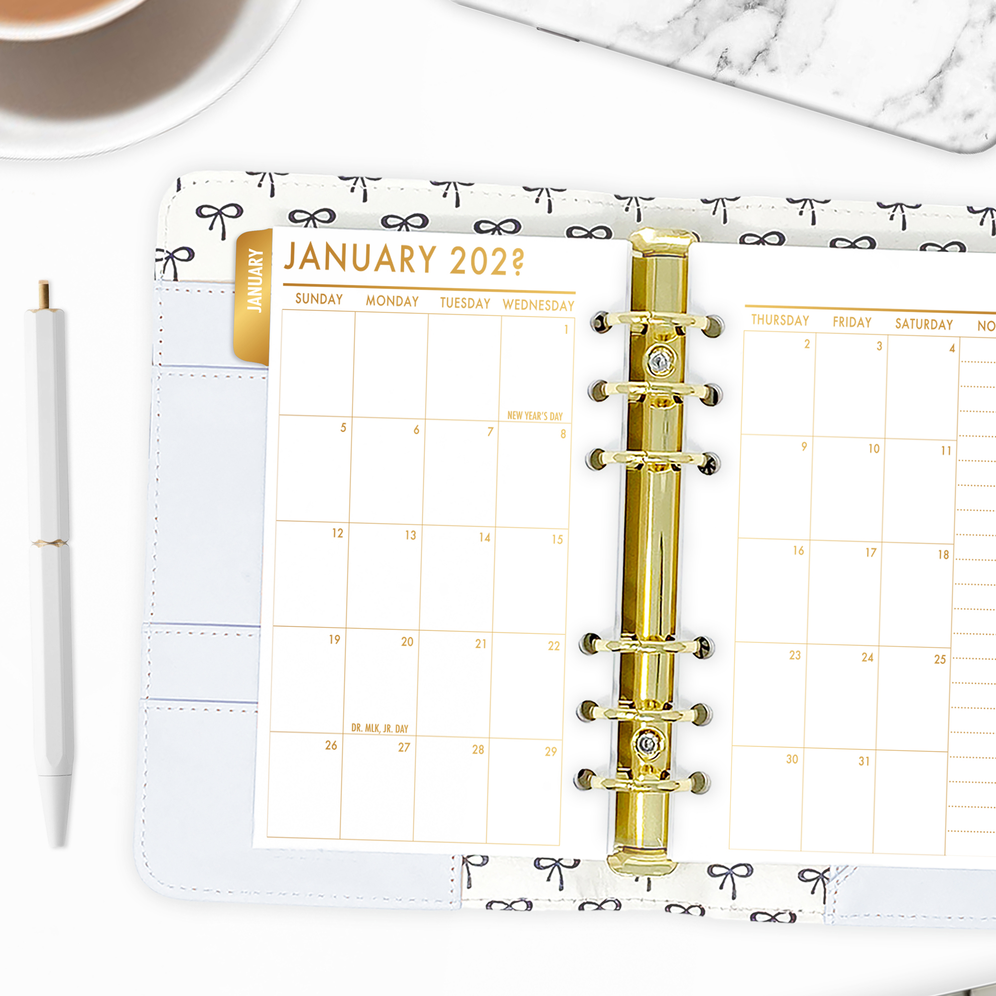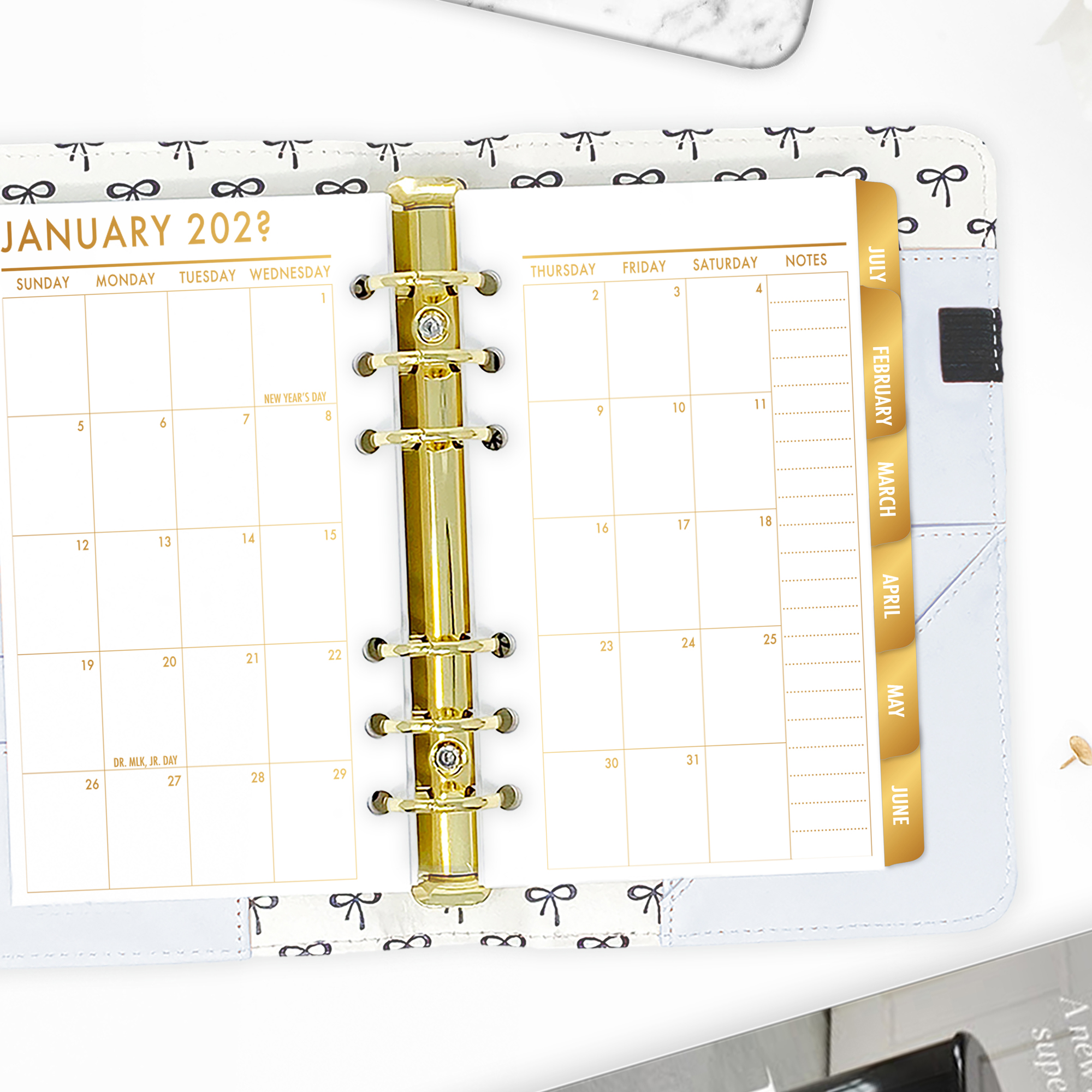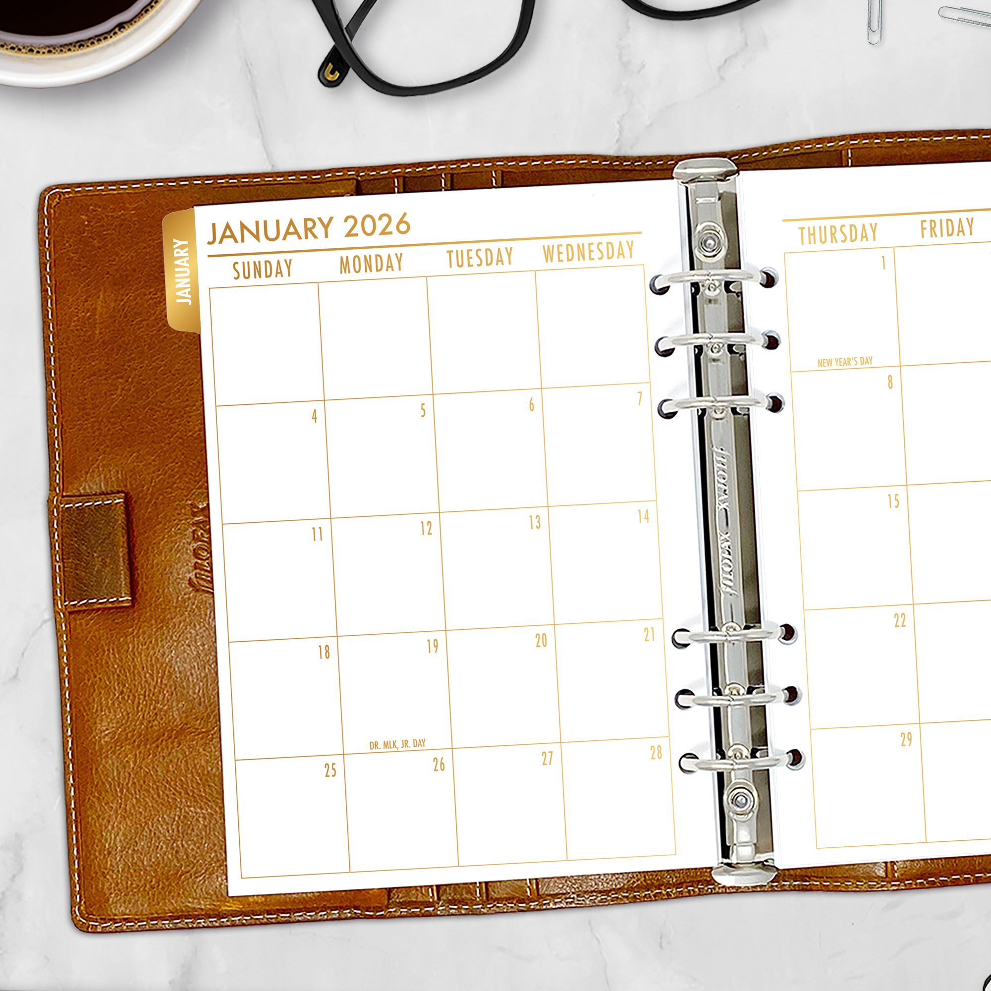 Month on 2 Pages Tabbed Planner Insert – Gold Luxe Gradient