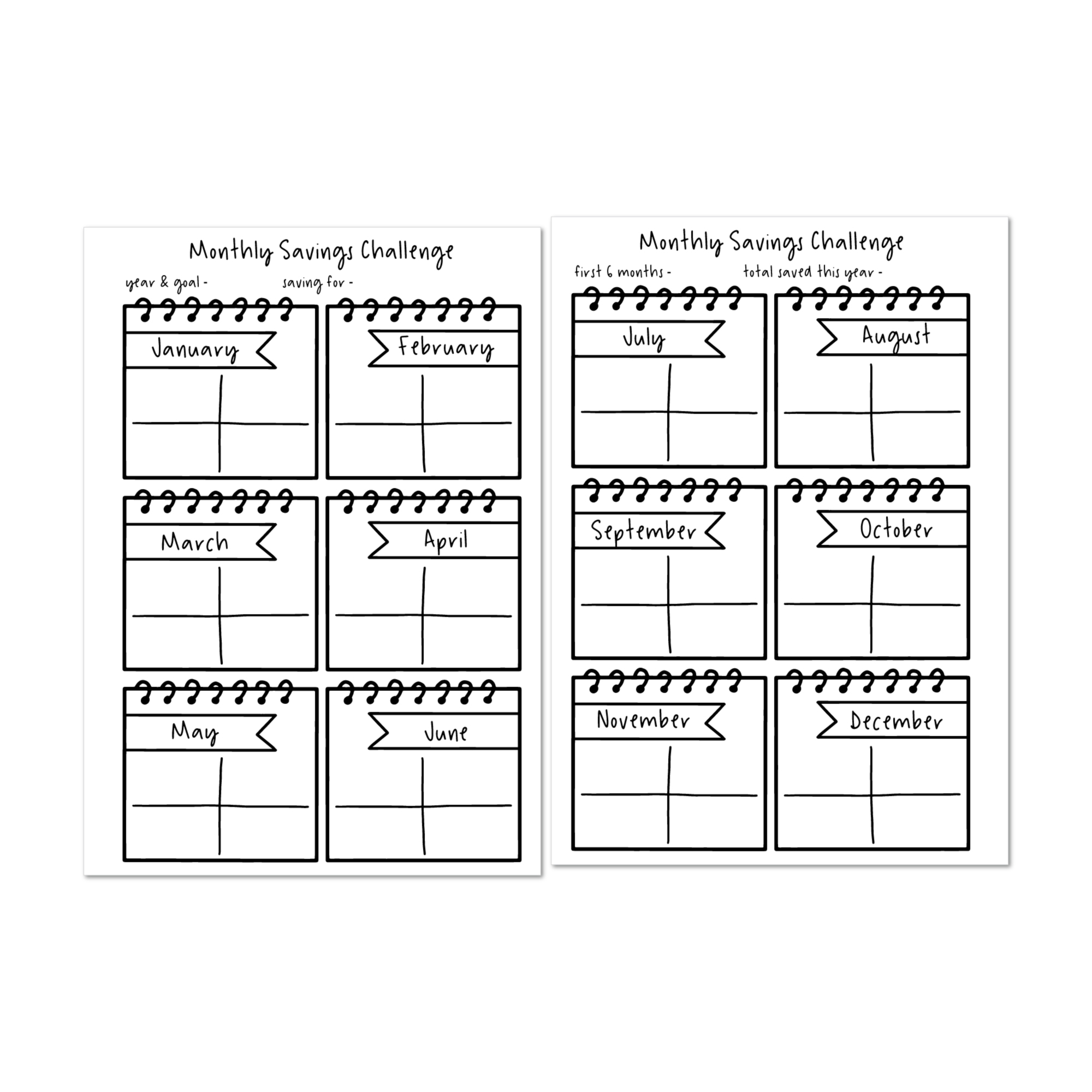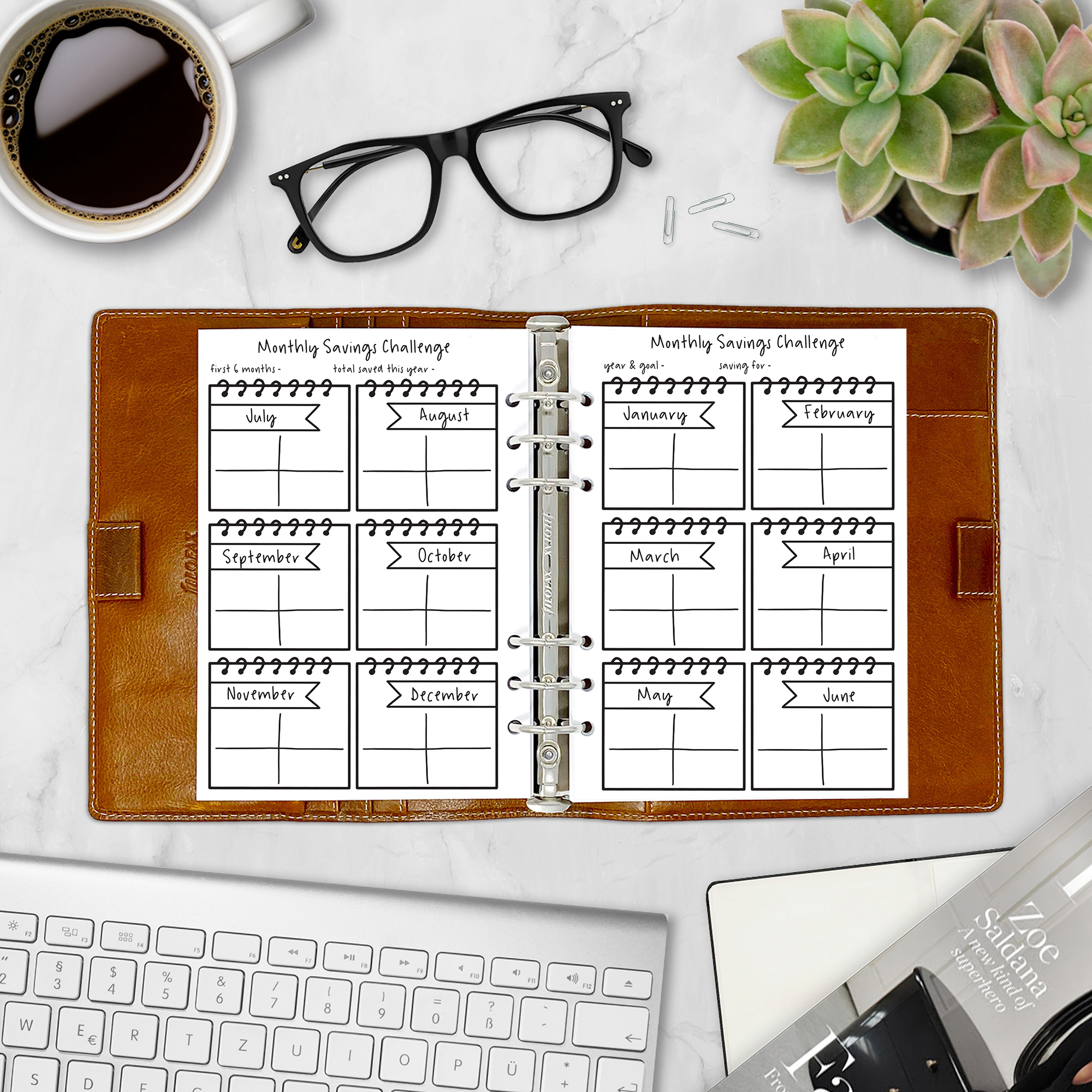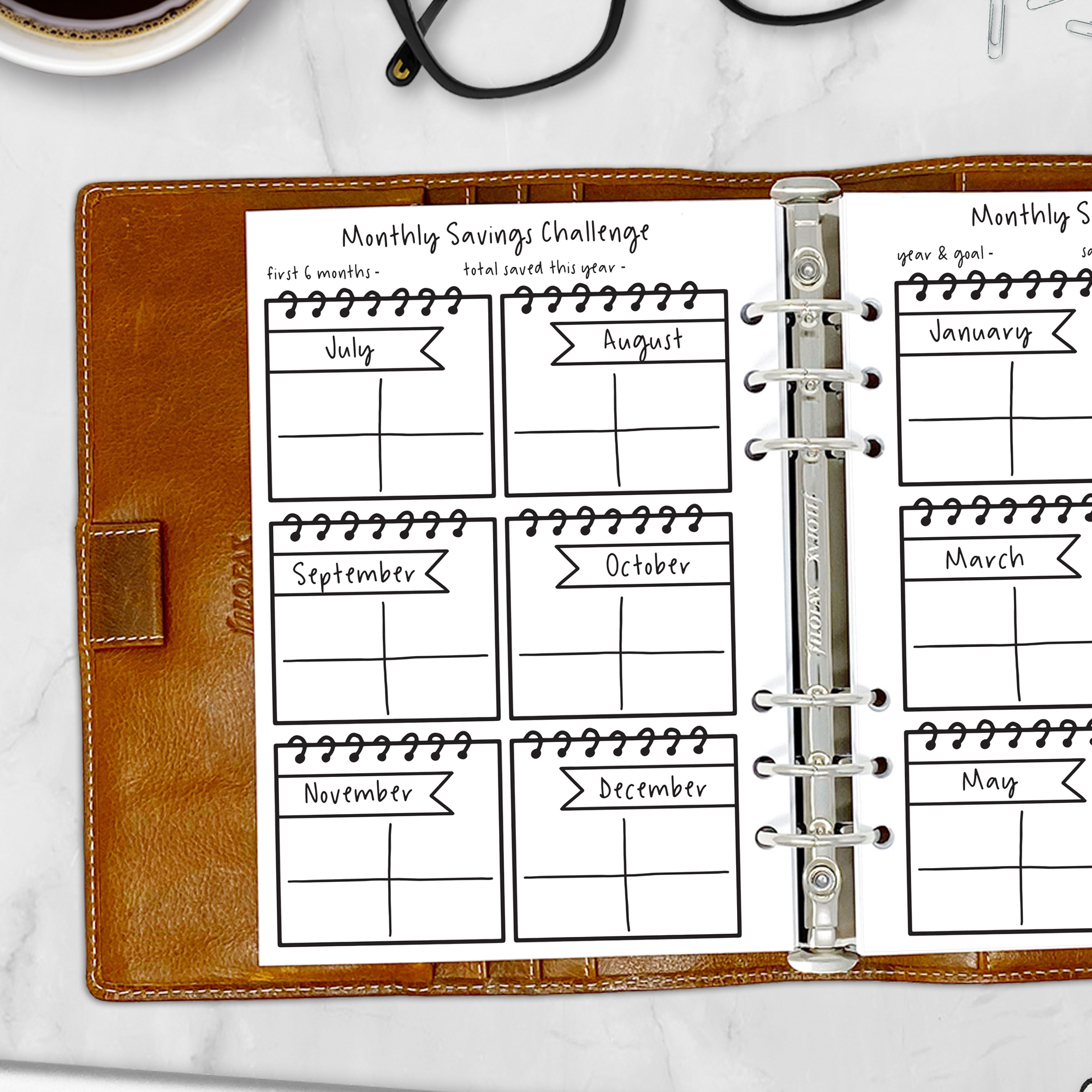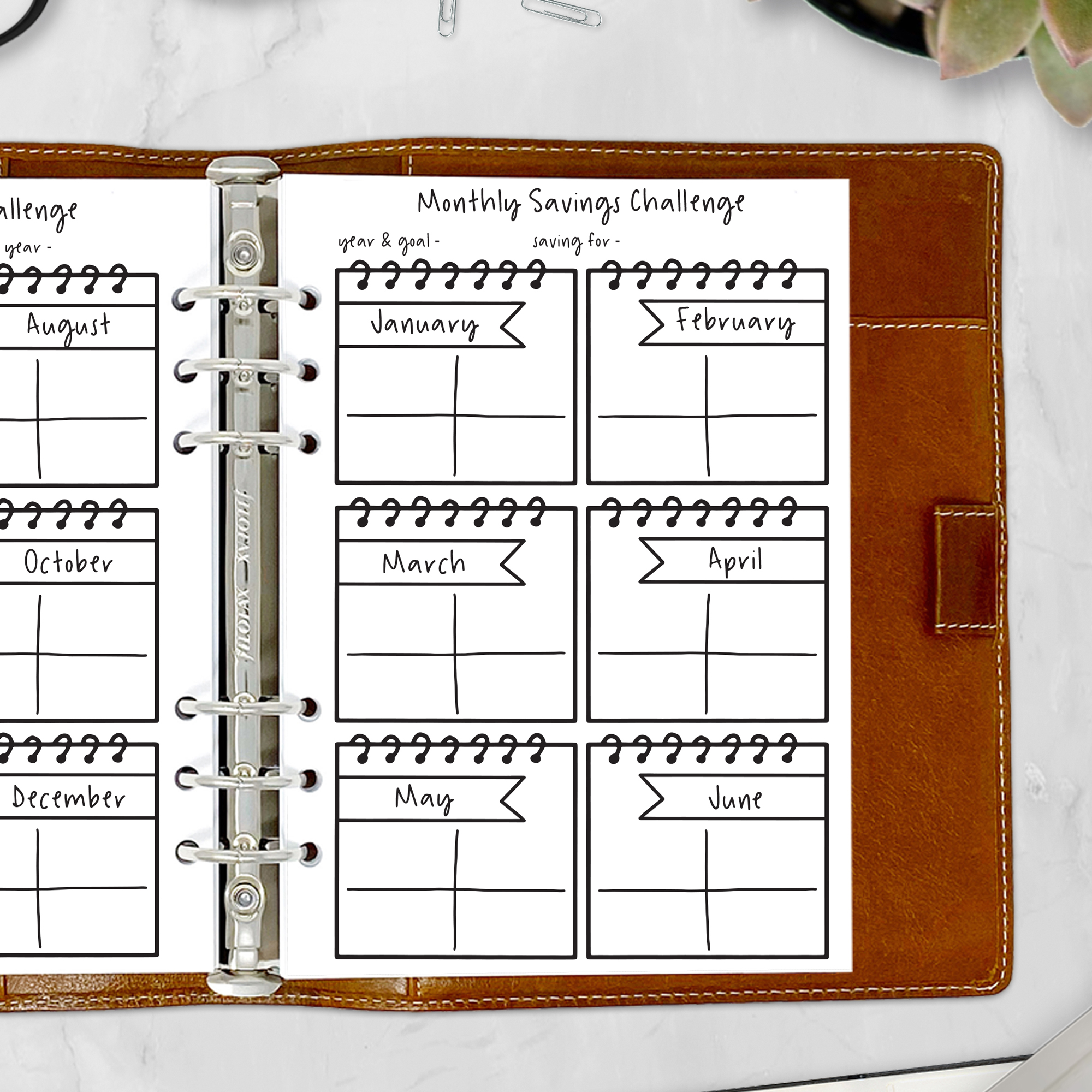 Savings Challenge Planner Insert – Monthly Blocks for Budgeting and Tracking