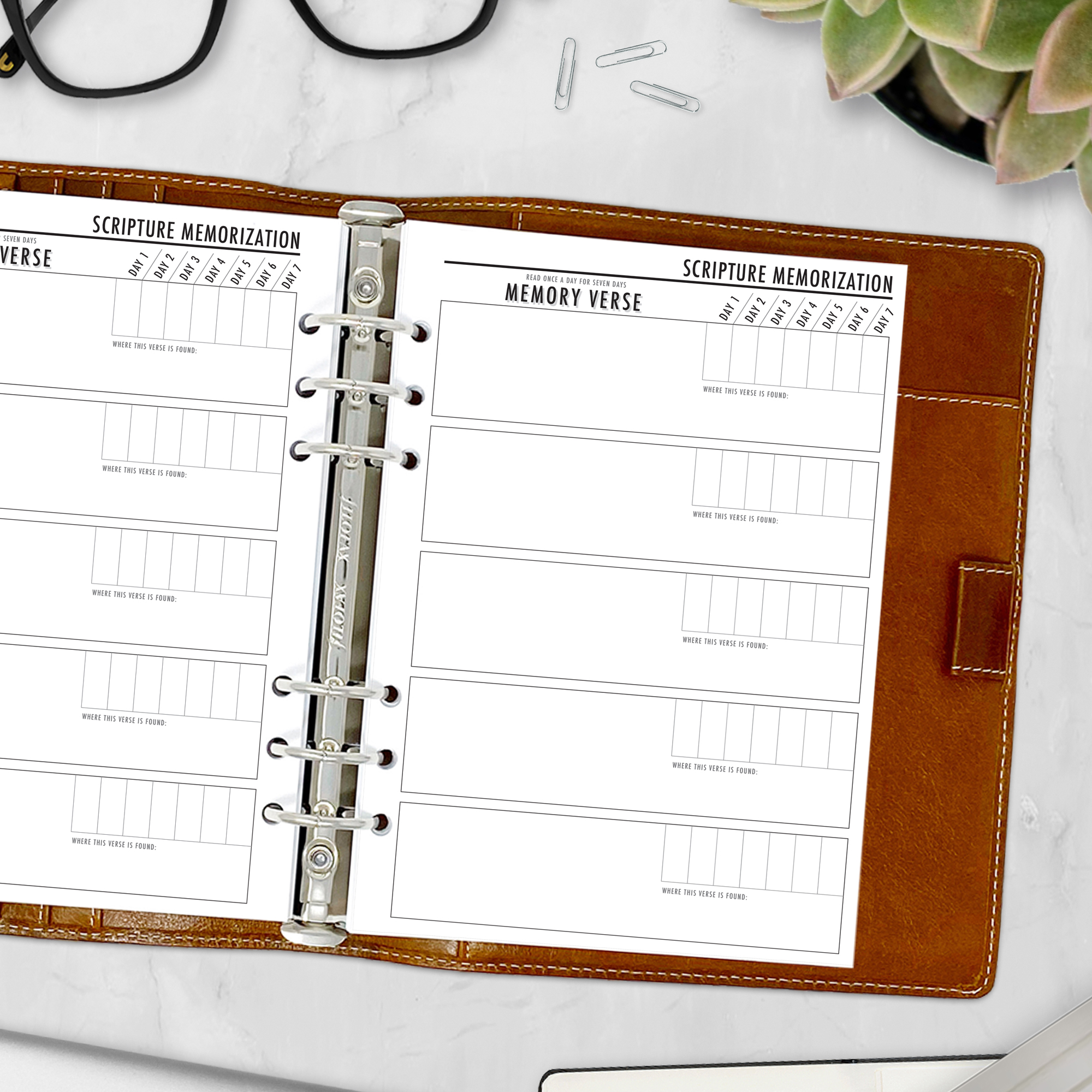 Scripture Memorization Planner Insert – Faith-Based Pages for Studying and Reflection