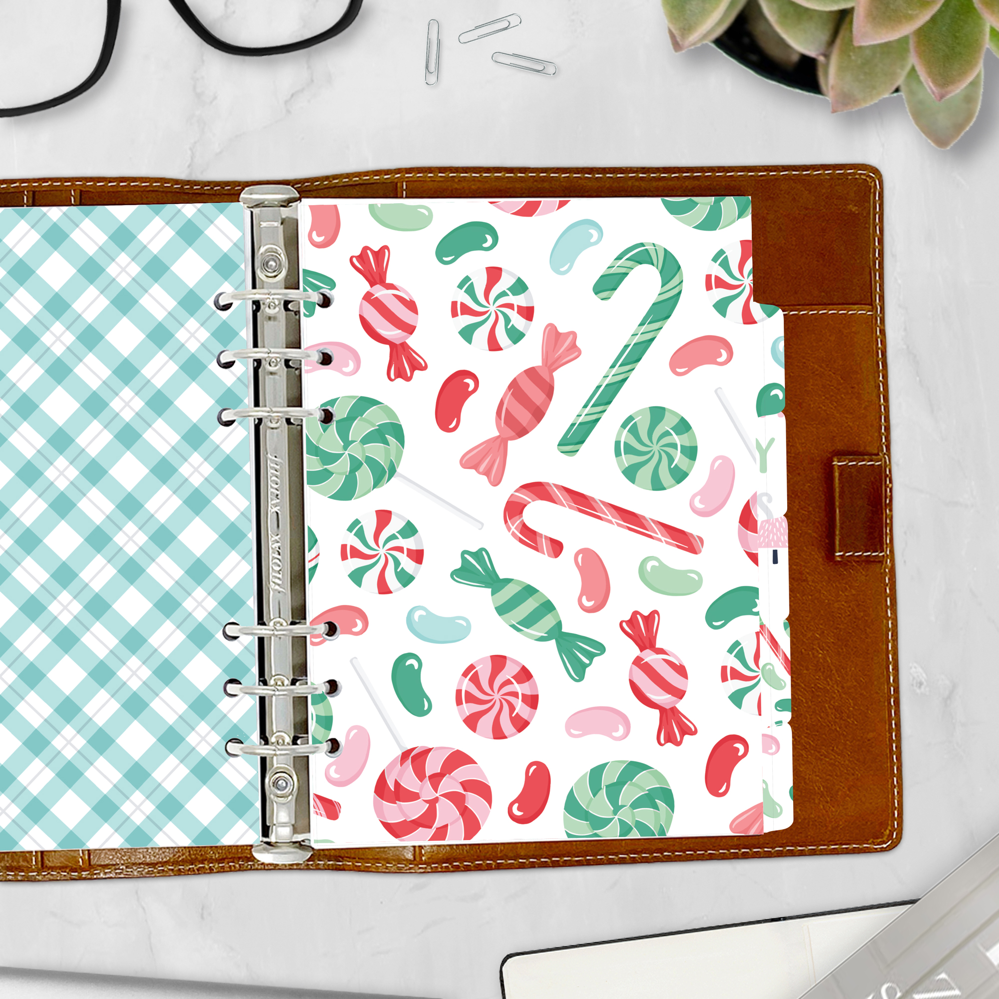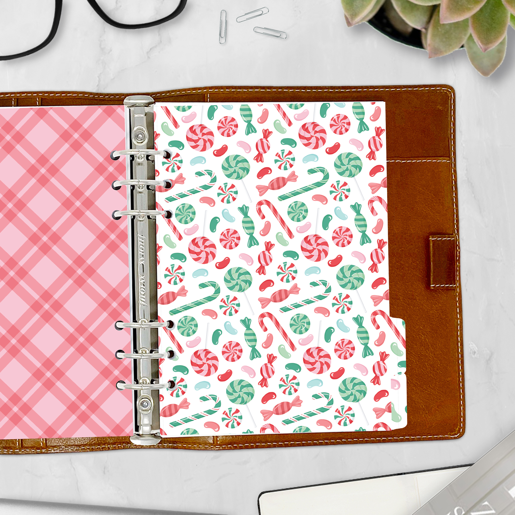 Celebrate the sweetness of the season with our “Candy Christmas” tabbed dividers. Featuring bright, cheerful colors with festive presents and delightful candies, these dividers bring a touch of holiday magic to your planner. Perfect for those who love a fun and vibrant twist on Christmas. Crafted from high-quality 65 lb coated cardstock, they’re durable yet slim, ensuring they fit seamlessly even in the most petite-diameter rings without adding bulk.