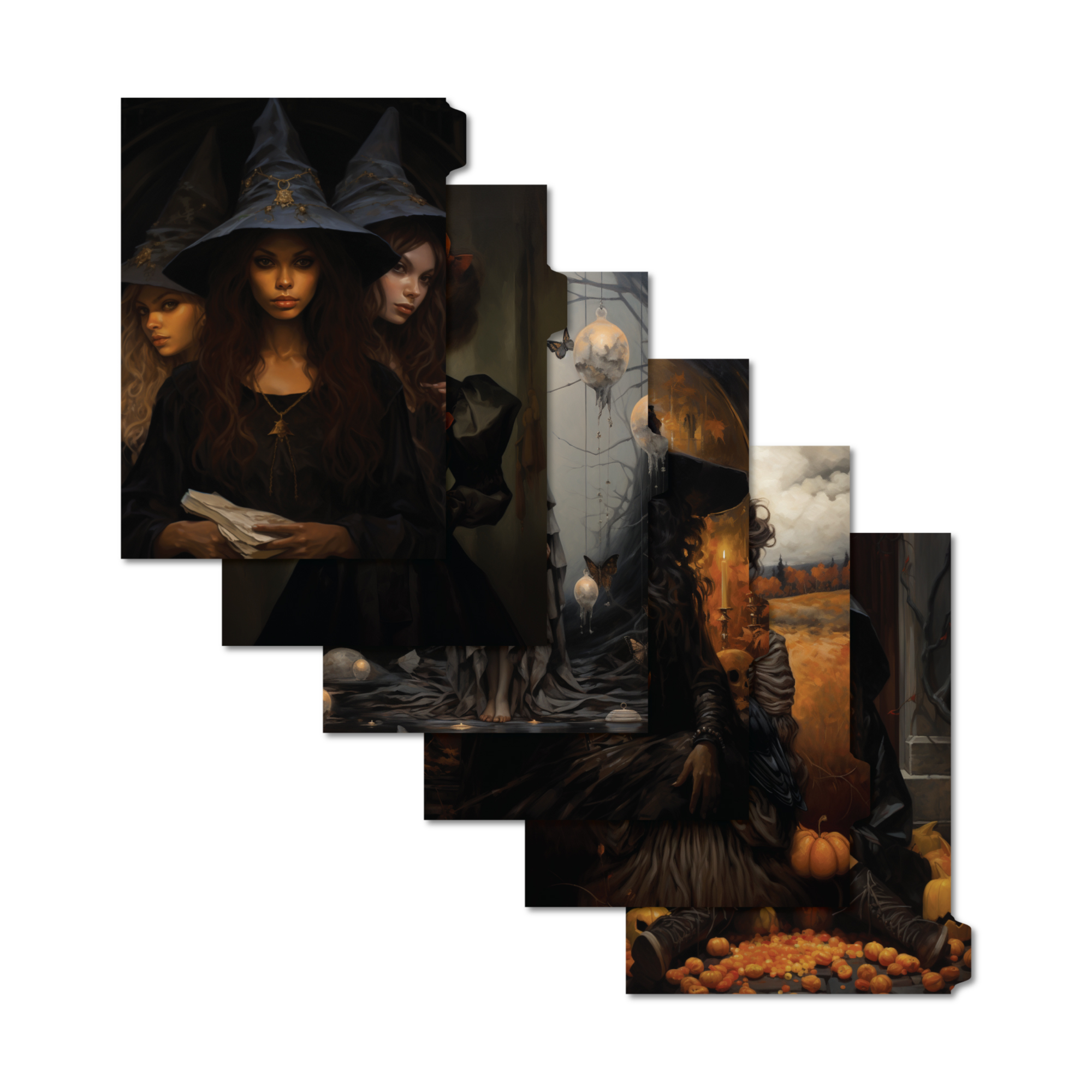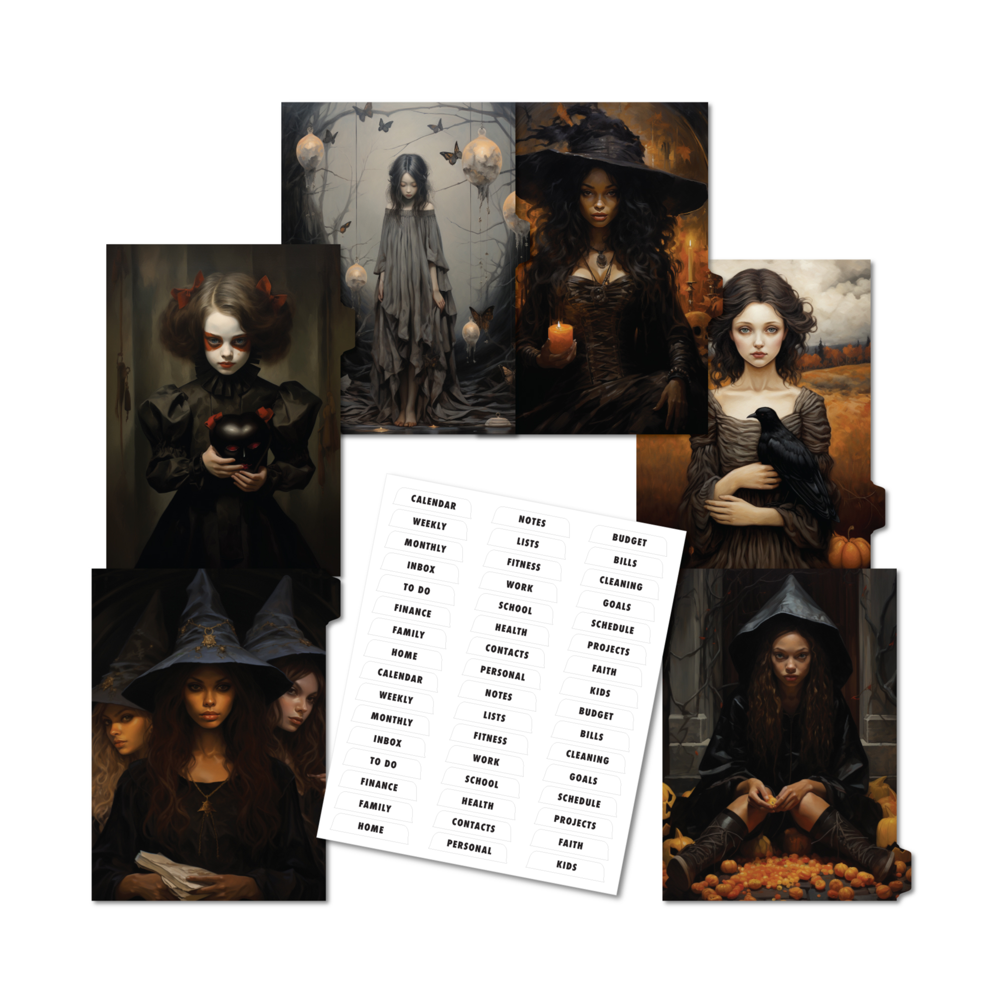 Add a touch of gothic charm to your planner with our “Ghostly Girls” tabbed dividers. Featuring hauntingly beautiful designs with mysterious witches, eerie Edgar Allan Poe-inspired landscapes, and a pale, ghostly girl accompanied by a raven, these dividers are perfect for those who love a dark, poetic aesthetic. Crafted from high-quality 65 lb coated cardstock, they’re durable yet slim, ensuring they fit seamlessly even in the most petite-diameter rings without adding bulk.
