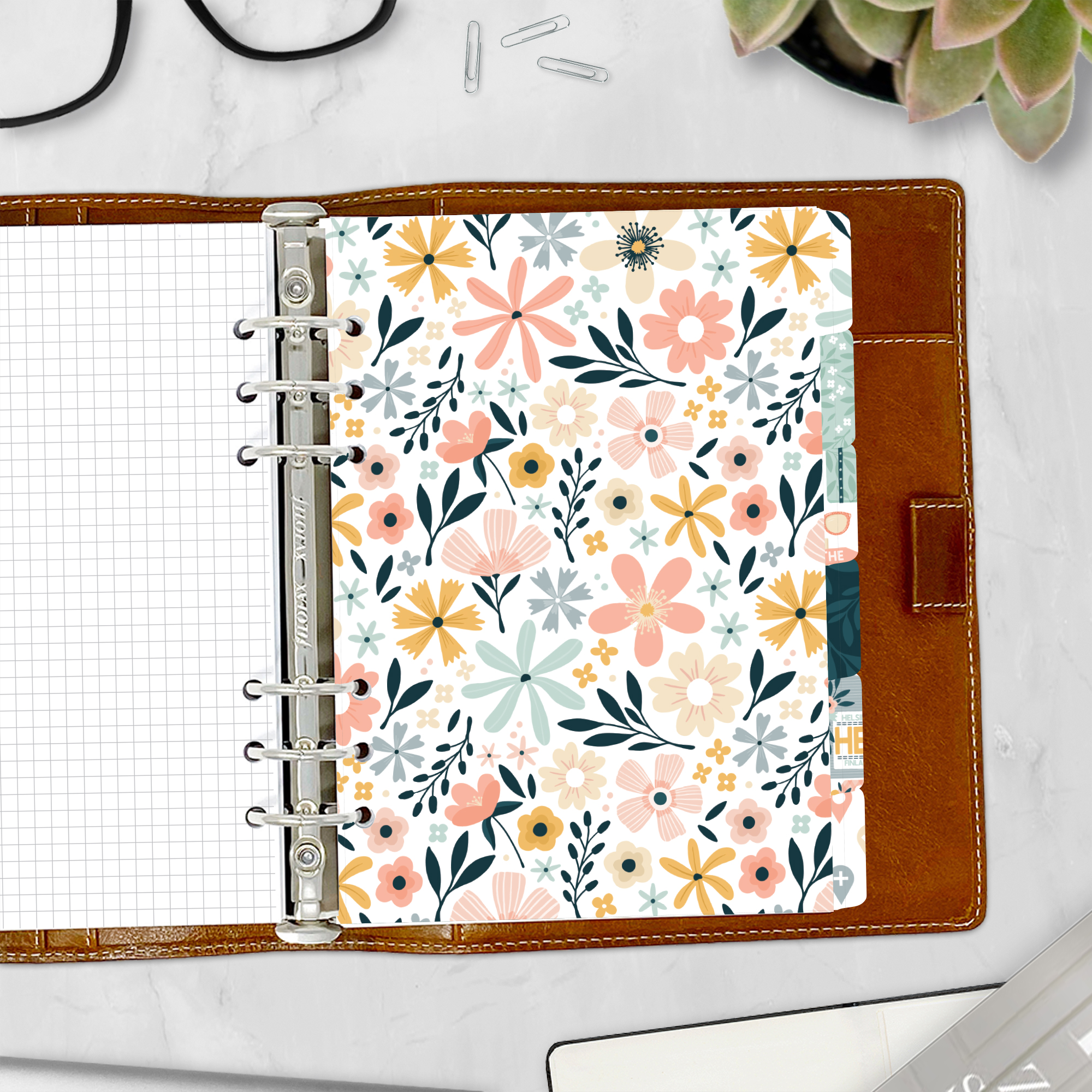 The listing is for the tabbed divider set only. Any decor is for styling purposes only. See the size chart tab for sizing details. Please measure your existing inserts BEFORE ordering to ensure a perfect fit when choosing which size refill to purchase. Or send us a quick email. We will help get you the right size for your planner as much as possible.
