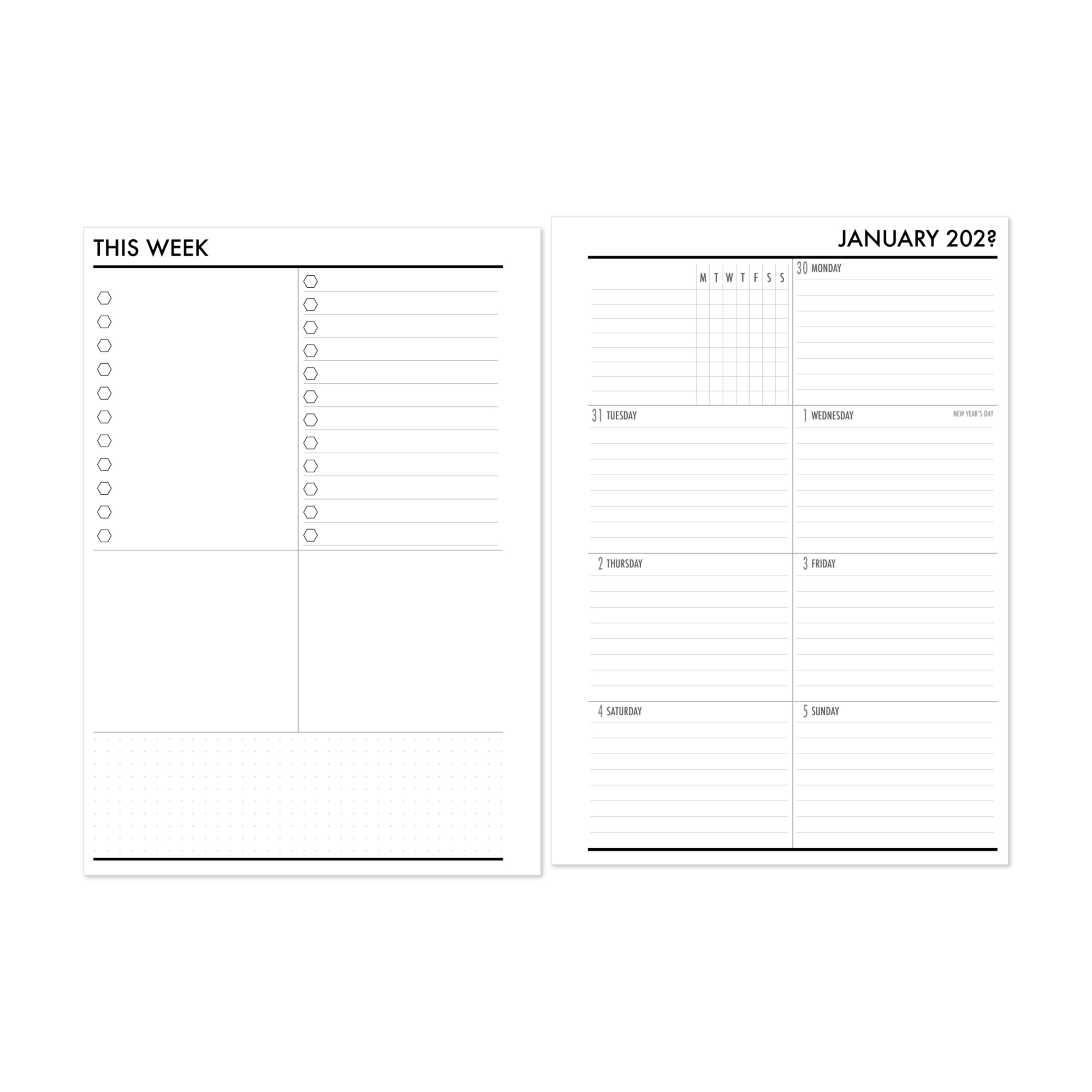 Our Week on 1 page planner calendar offers premium quality and minimalist design. Don’t let your planner make you feel overwhelmed. It’s easy to tackle your day with intention with our simple designs and make progress on your most demanding plans. It helps manage your schedule and launch your to-do list without all the extra fluff getting in the way.