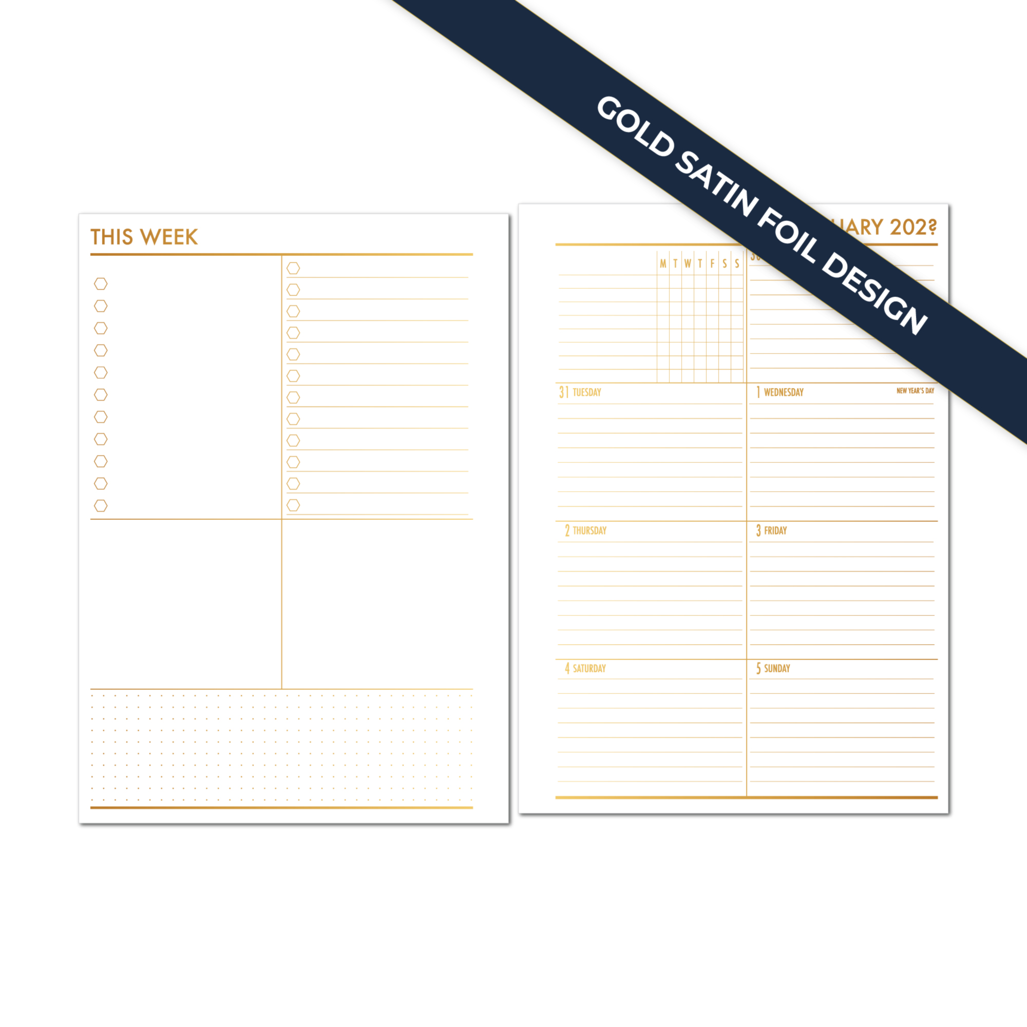 Week on 1 Page Planner Insert – Gold Satin Foil