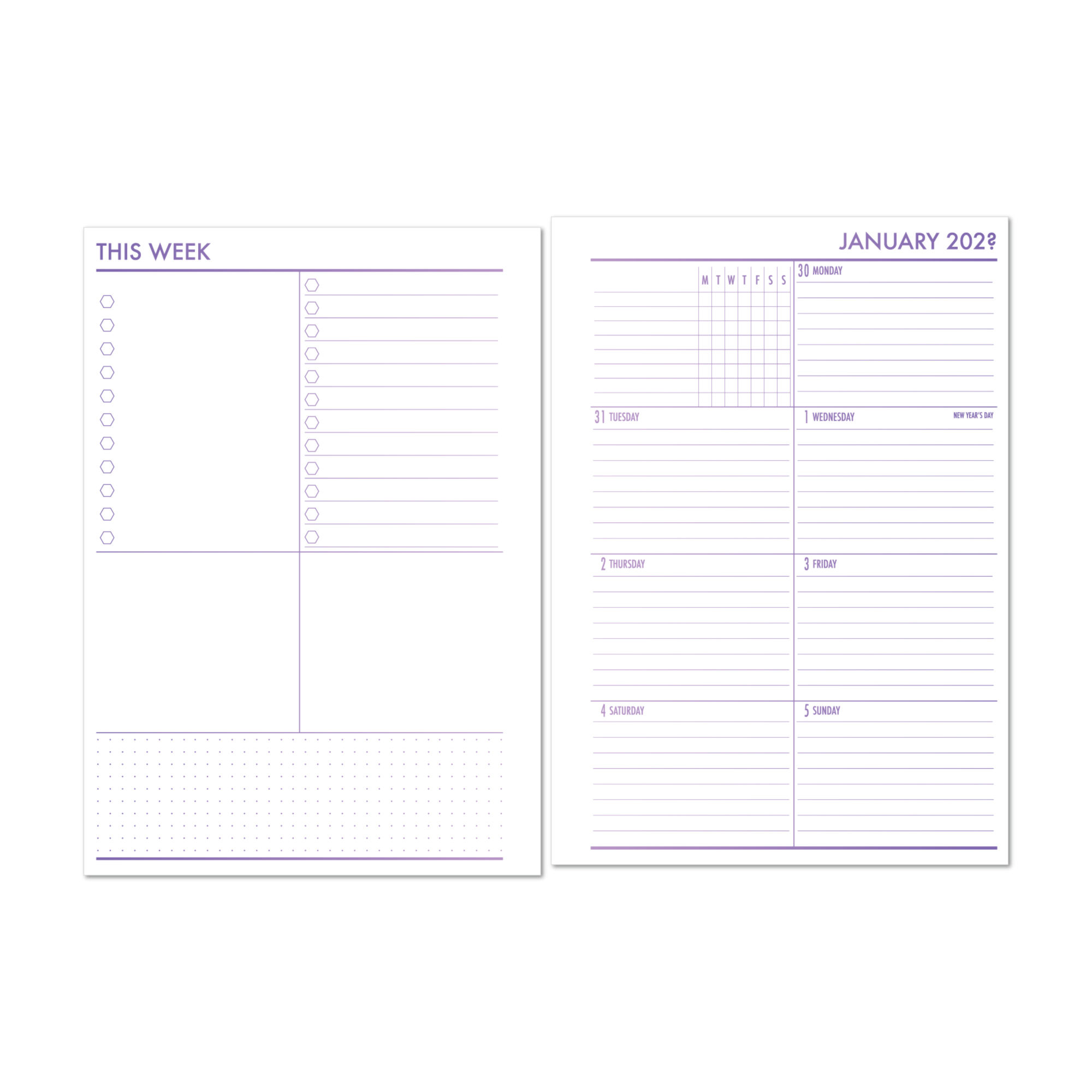 Week on 1 Page Planner Insert – Lilac Hex Gradient
