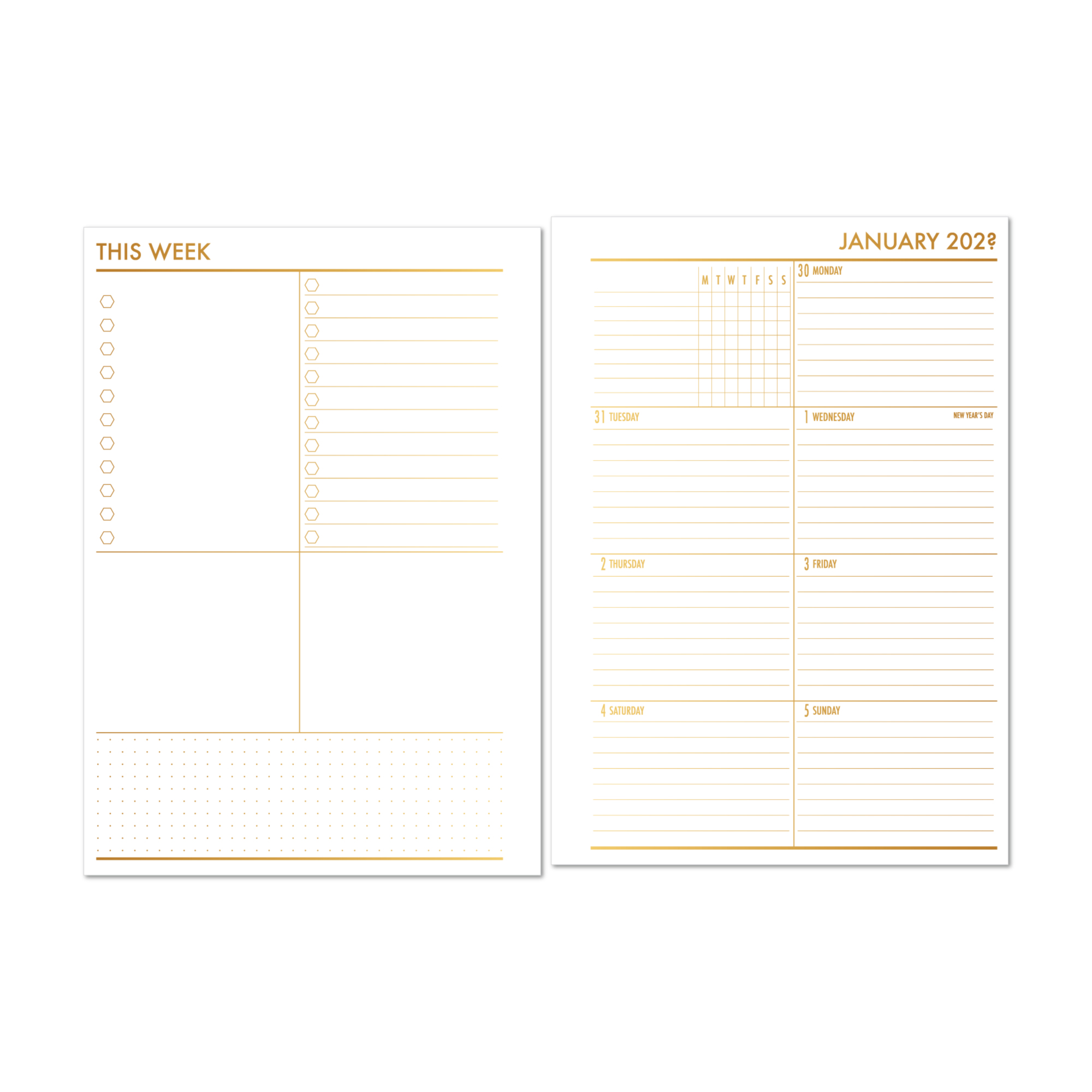 Week on 1 Page Planner Insert – Gold Luxe Gradient