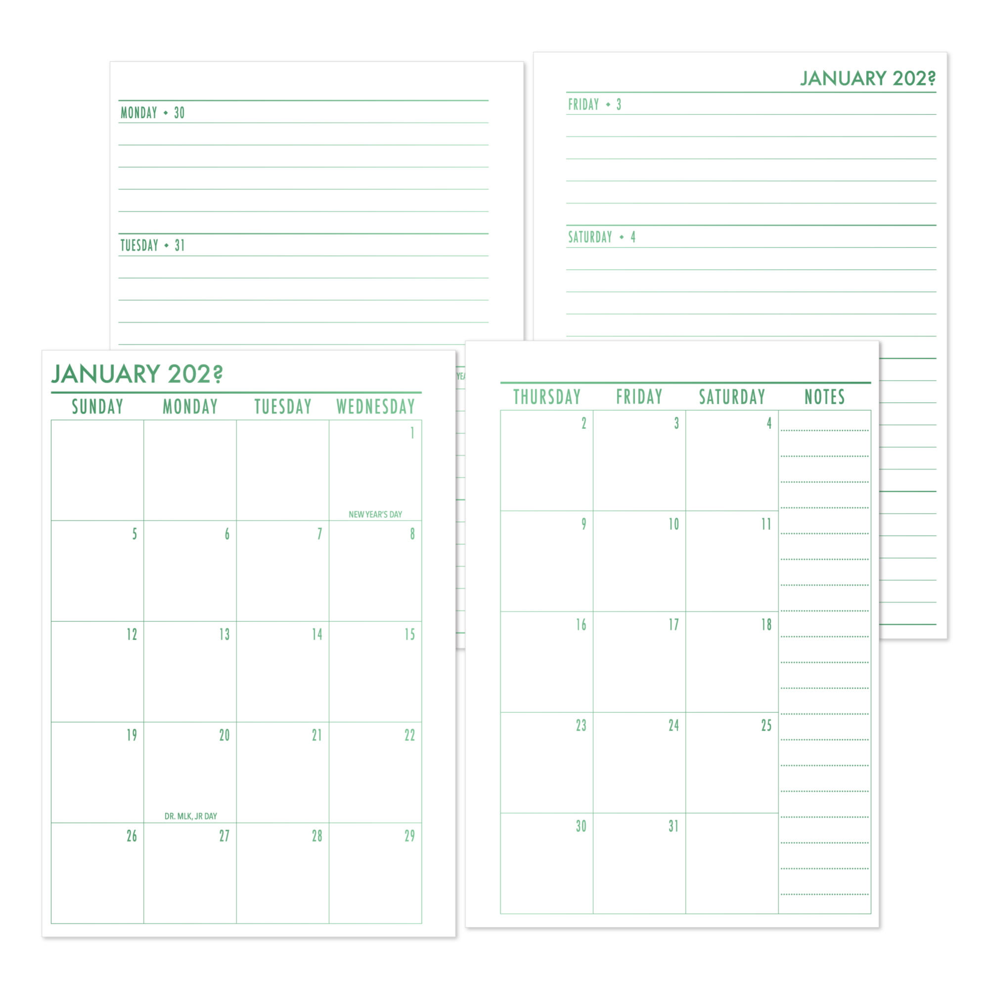 • Includes both monthly and horizontal weekly layouts