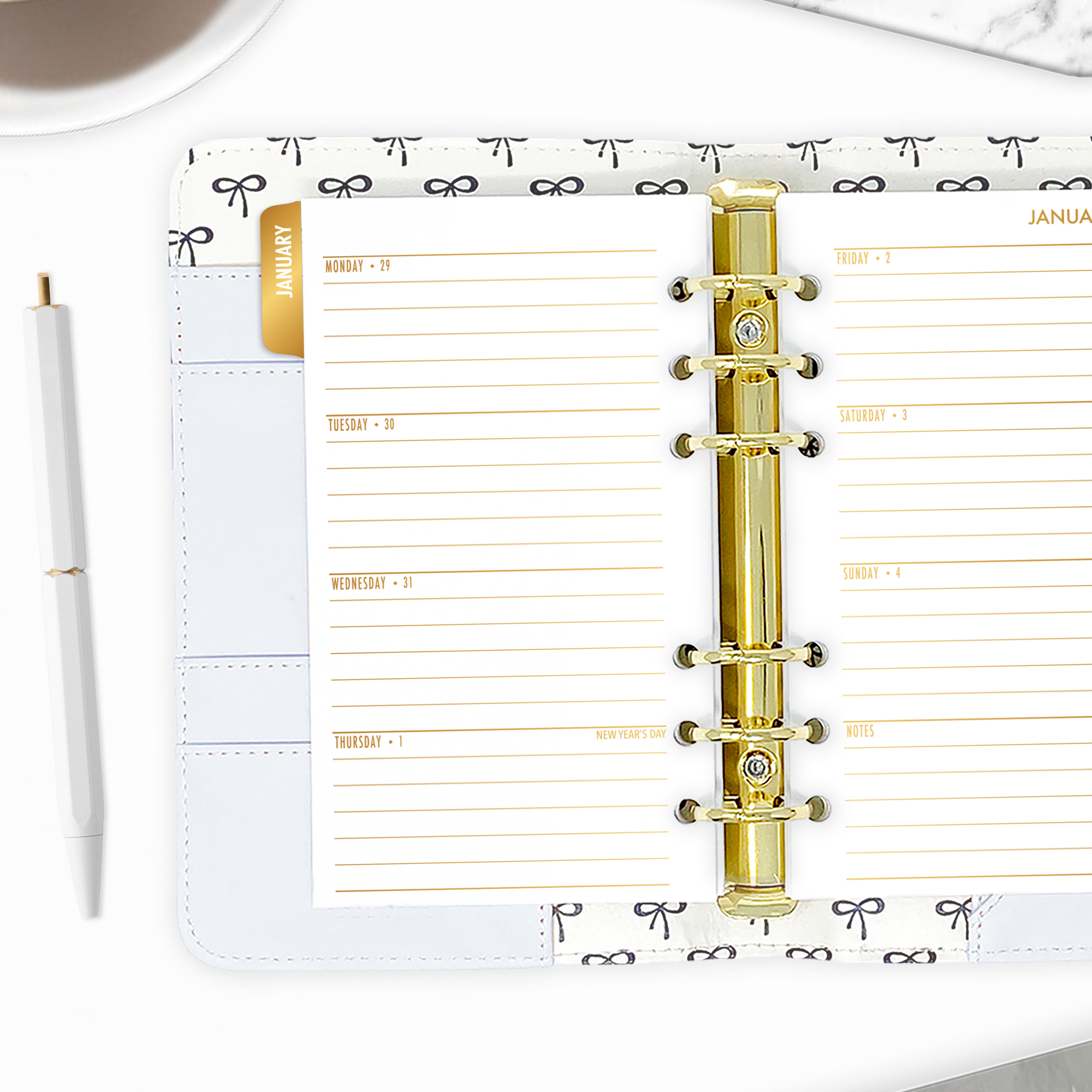 One insert to rule them all, monthly and weekly planning in a single streamlined layout.