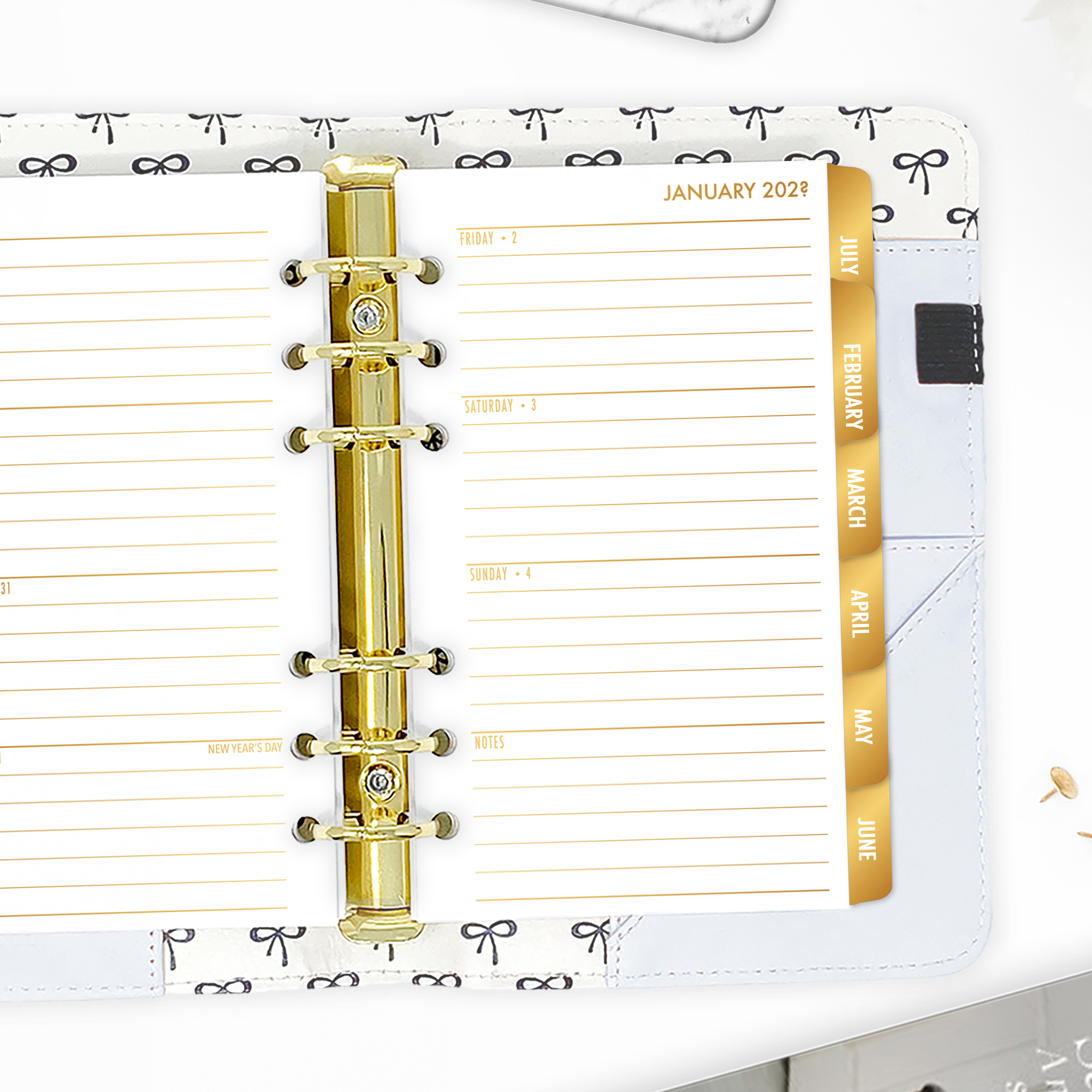 This Complete Horizontal tabbed Planner Insert combines full monthly spreads with clean horizontal weekly pages in one cohesive flow. Each month begins with a Sunday start monthly view, followed by Monday start weekly spreads. Just choose your size, punch style, and calendar year.