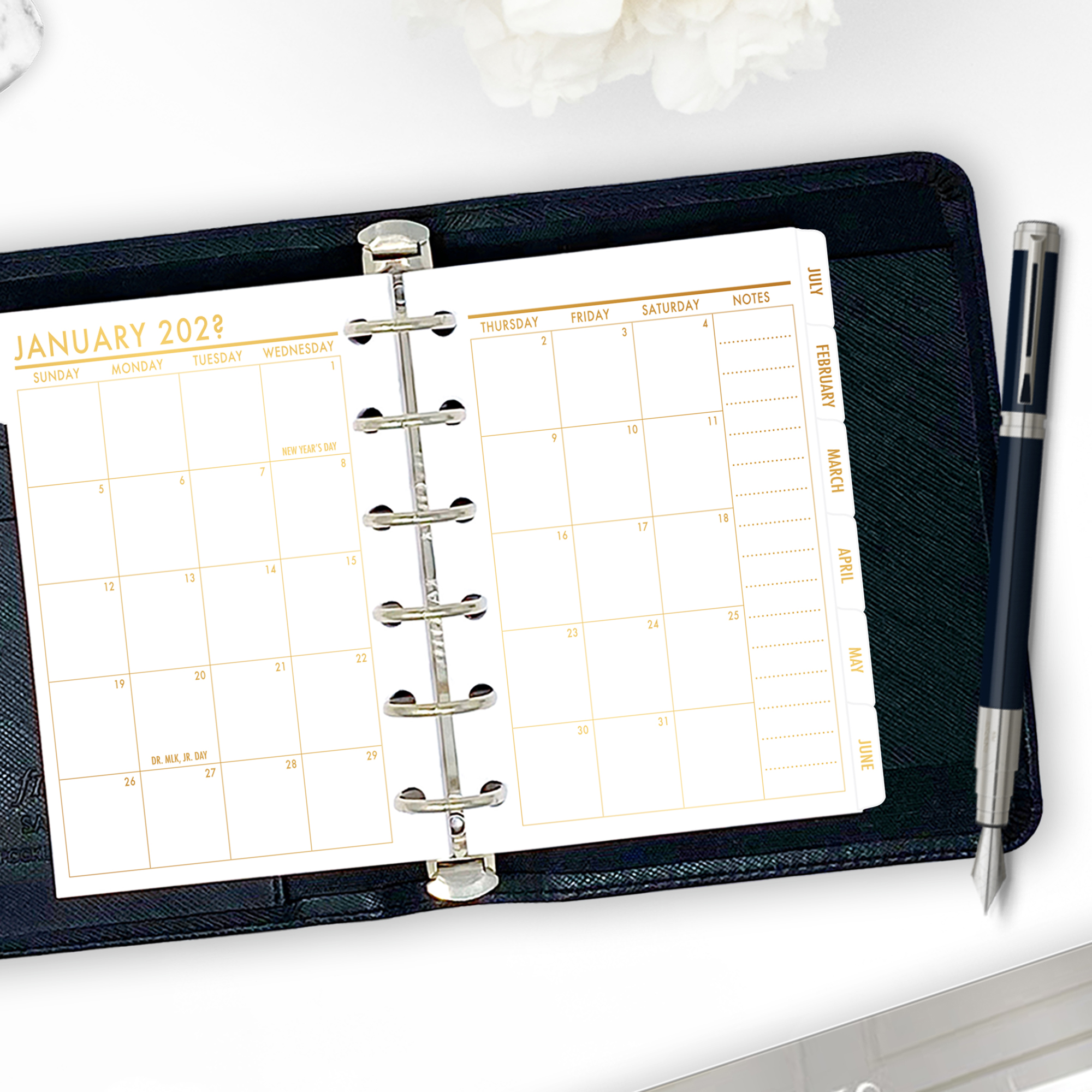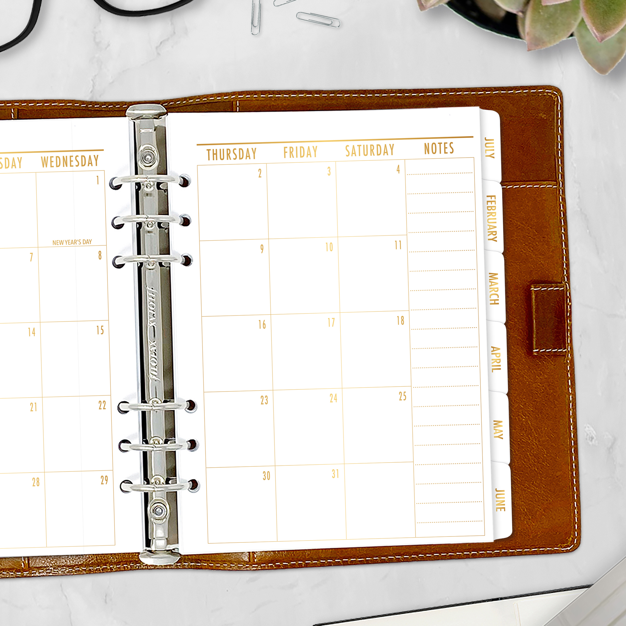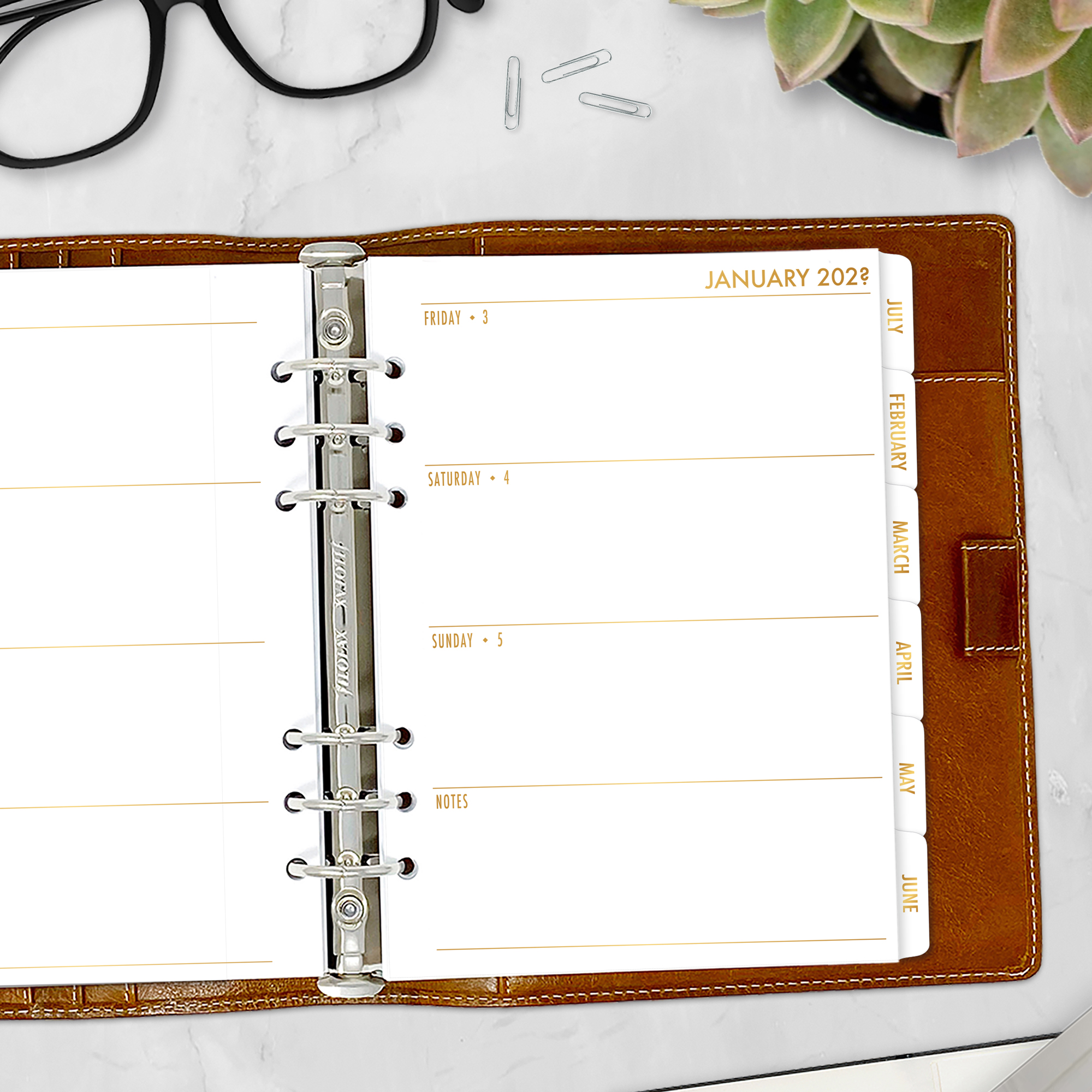 Weekly Horizontal + Monthly Tabbed Planner Insert – Gold Satin Foil | Text Tabs (Complete Layout)