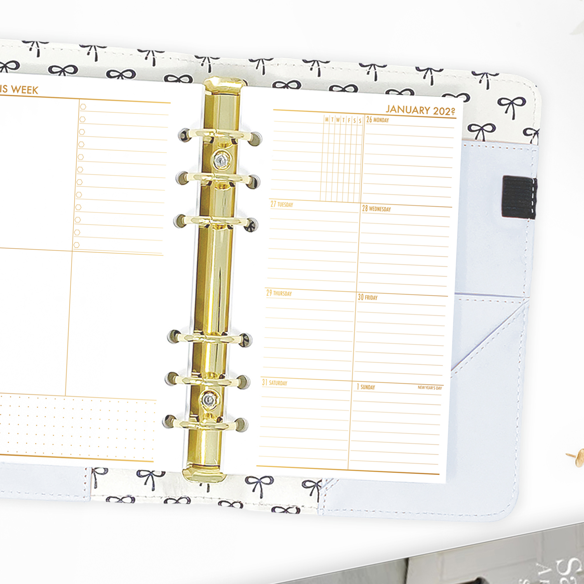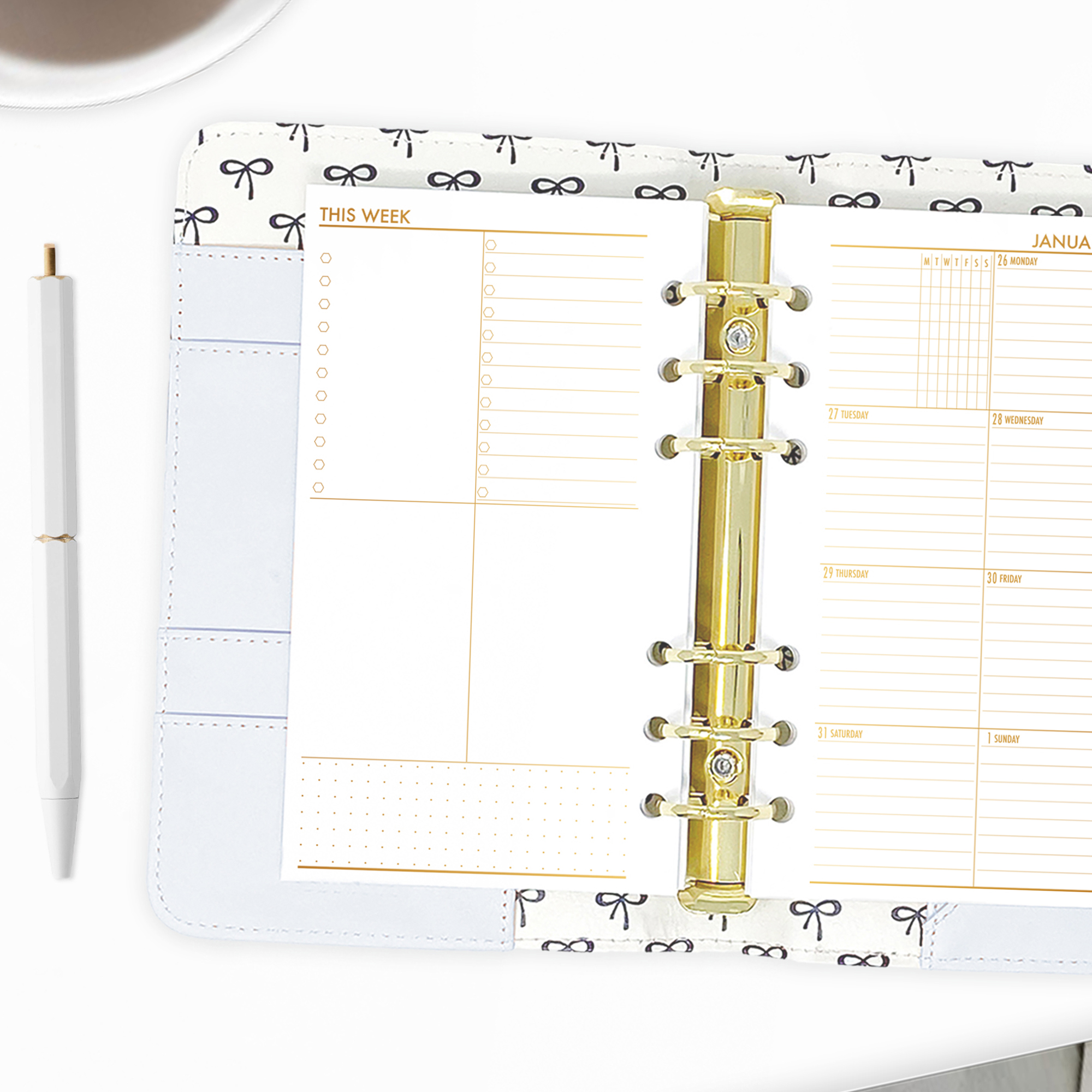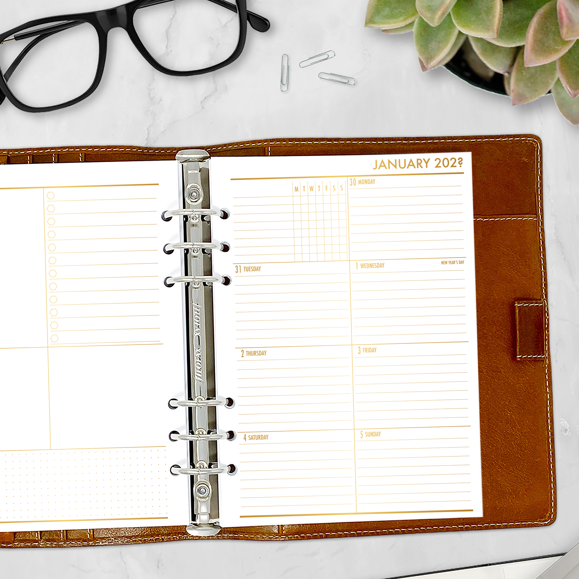 Weekly One Page + Monthly Planner Insert – Gold Satin Foil (Complete Layout)